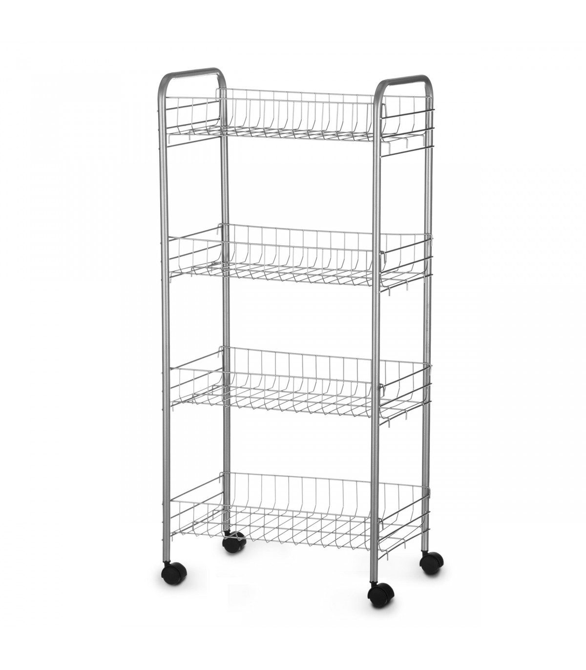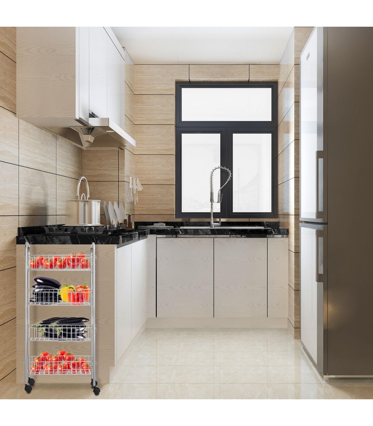 Verdulero de Cocina, 3 Pisos, con Ruedas, Plata, Metal y Plástico PP (4 Pisos)