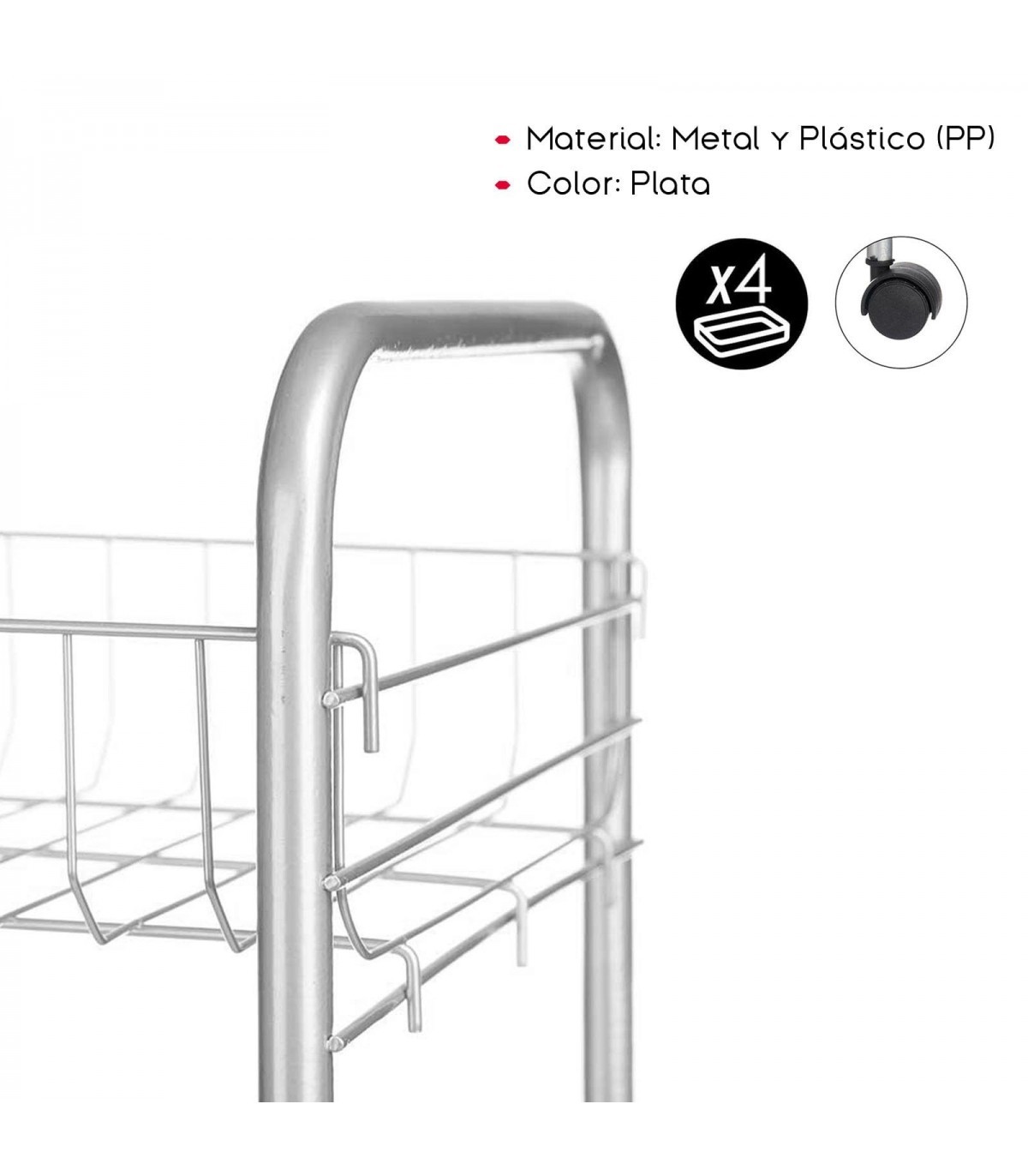 Fabricados con materiales duraderos como el metal y el plástico PP, estos carritos verduleros garantizan resistencia y estabilidad, mientras que su acabado en color plata añade un toque de modernidad a tu espacio. Equipados con ruedas giratorias, ofrecen una movilidad excepcional que te permite desplazarlos fácilmente según tus necesidades. Además, su montaje rápido y sencillo te permite disfrutar rápidamente de la comodidad y funcionalidad que estos carritos ofrecen.