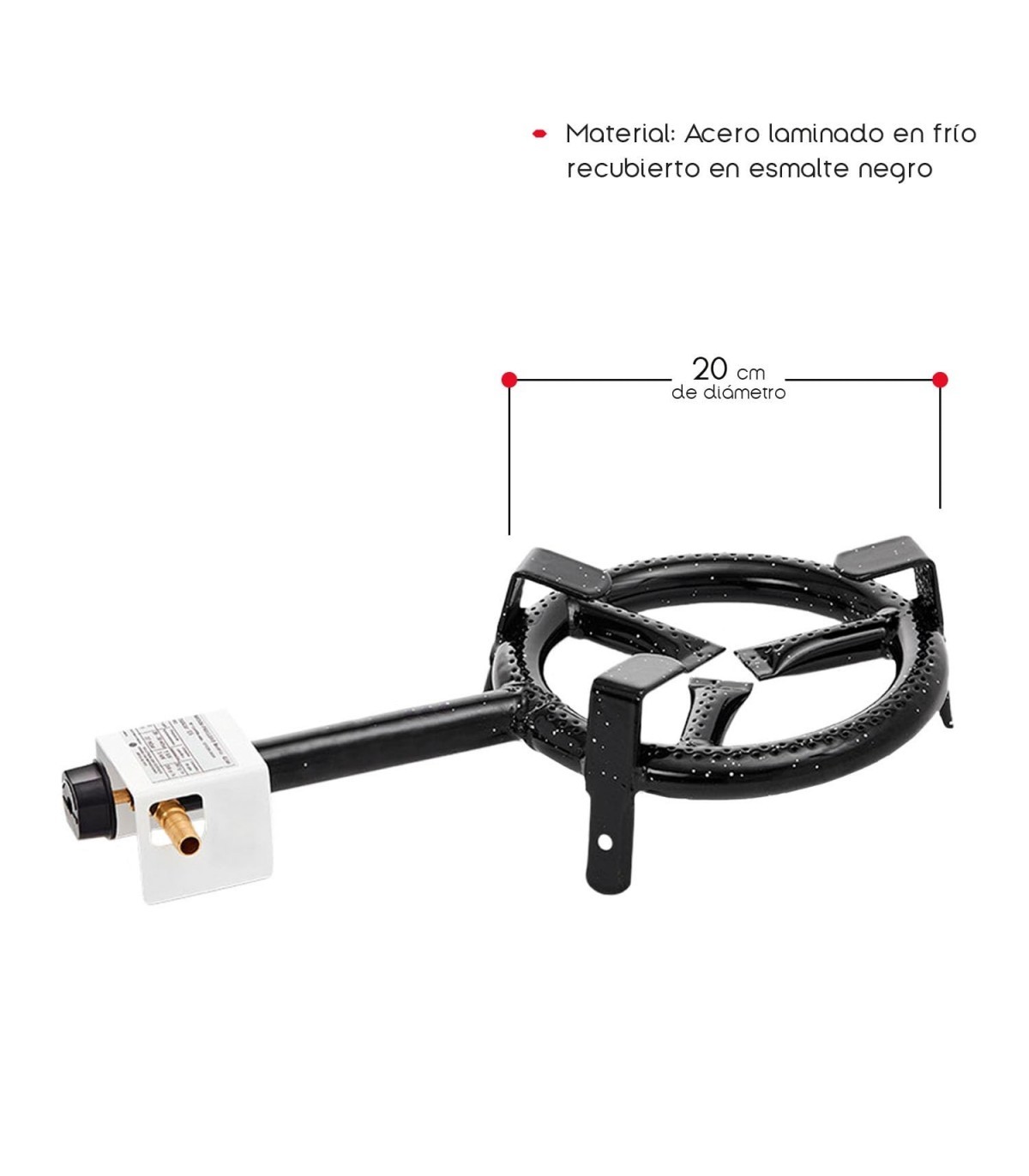 ? Diseño Robusto y Duradero: Fabricado con acero laminado en frío y recubierto con esmalte negro, este quemador paellero garantiza una durabilidad y resistencia superiores, ideal para un uso prolongado en exteriores.