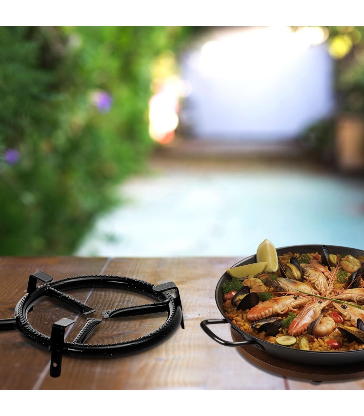 ? Diseño Robusto y Duradero: Fabricado con acero laminado en frío y recubierto con esmalte negro, este quemador paellero garantiza una durabilidad y resistencia superiores, ideal para un uso prolongado en exteriores.