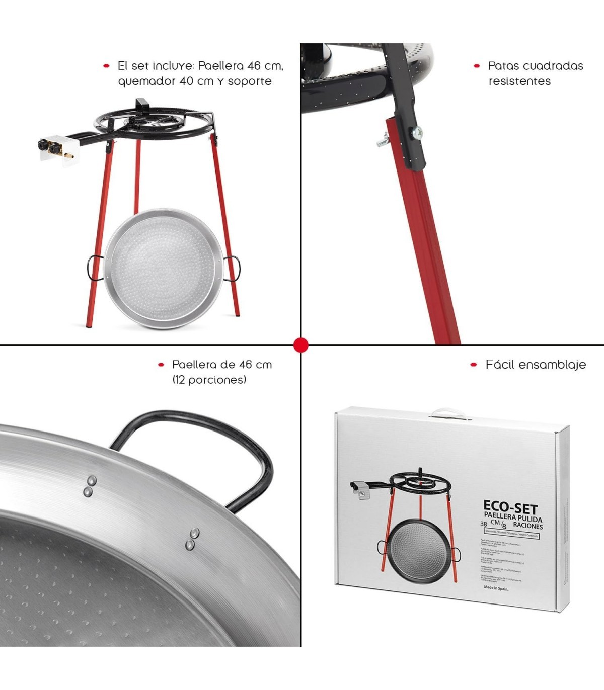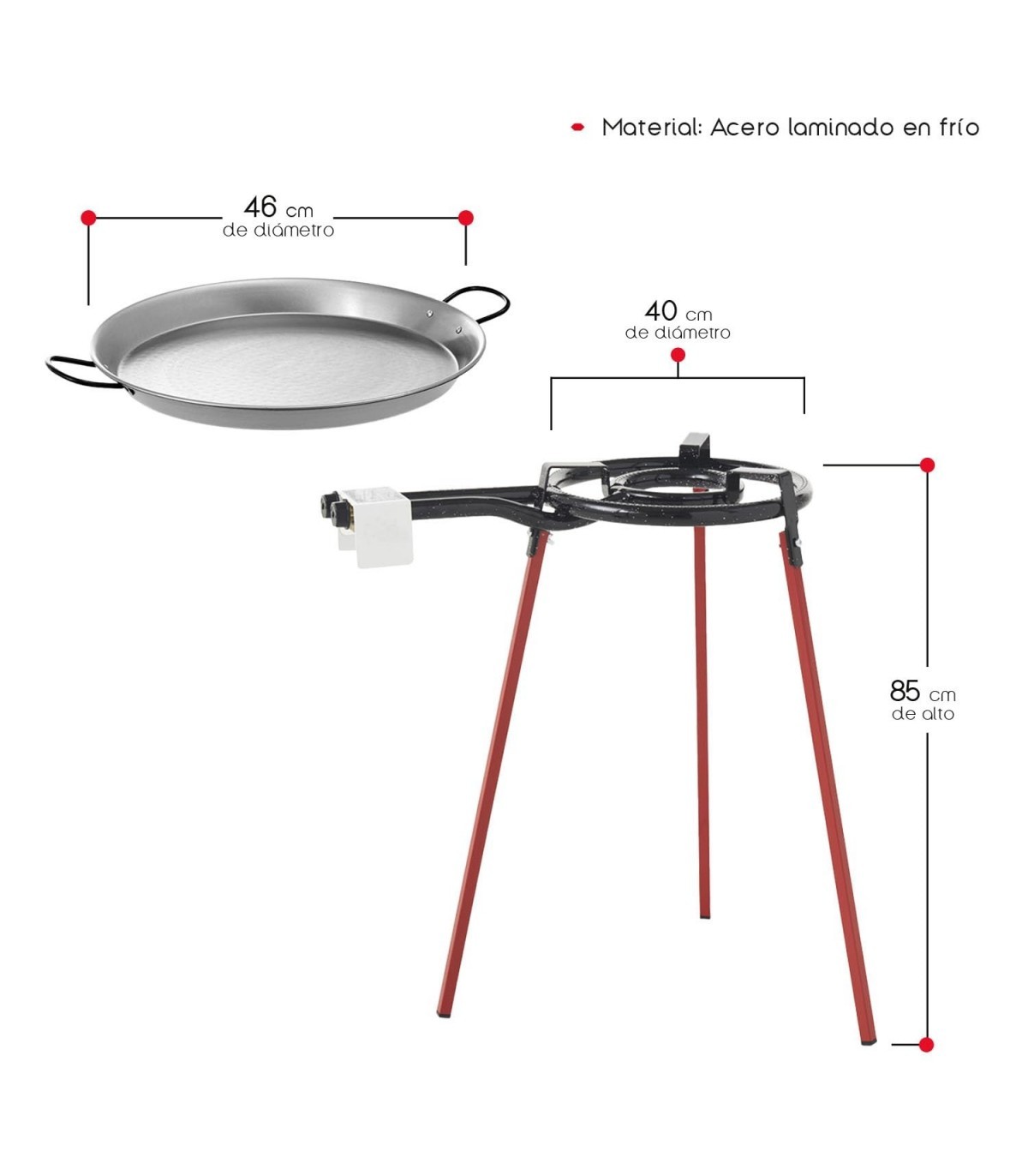 ? Ideal para Exteriores: Diseñado específicamente para su uso al aire libre, este set paellero es perfecto para reuniones familiares, eventos y cualquier ocasión en la que desees disfrutar de una deliciosa paella al aire libre.
