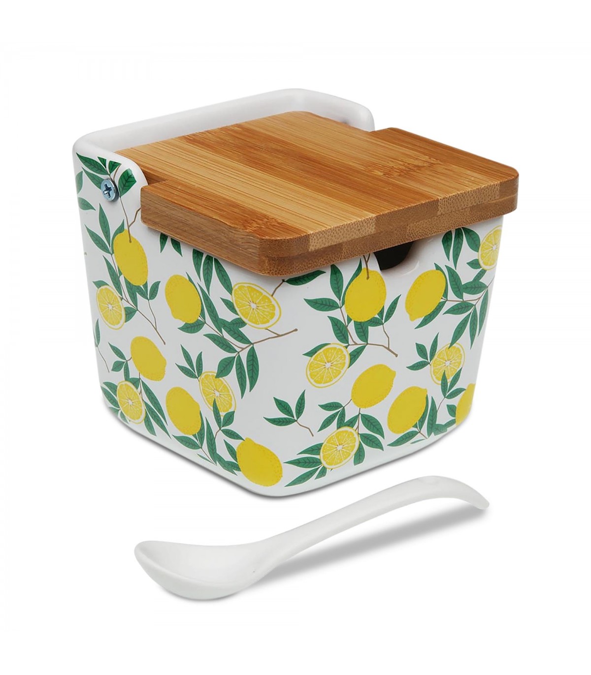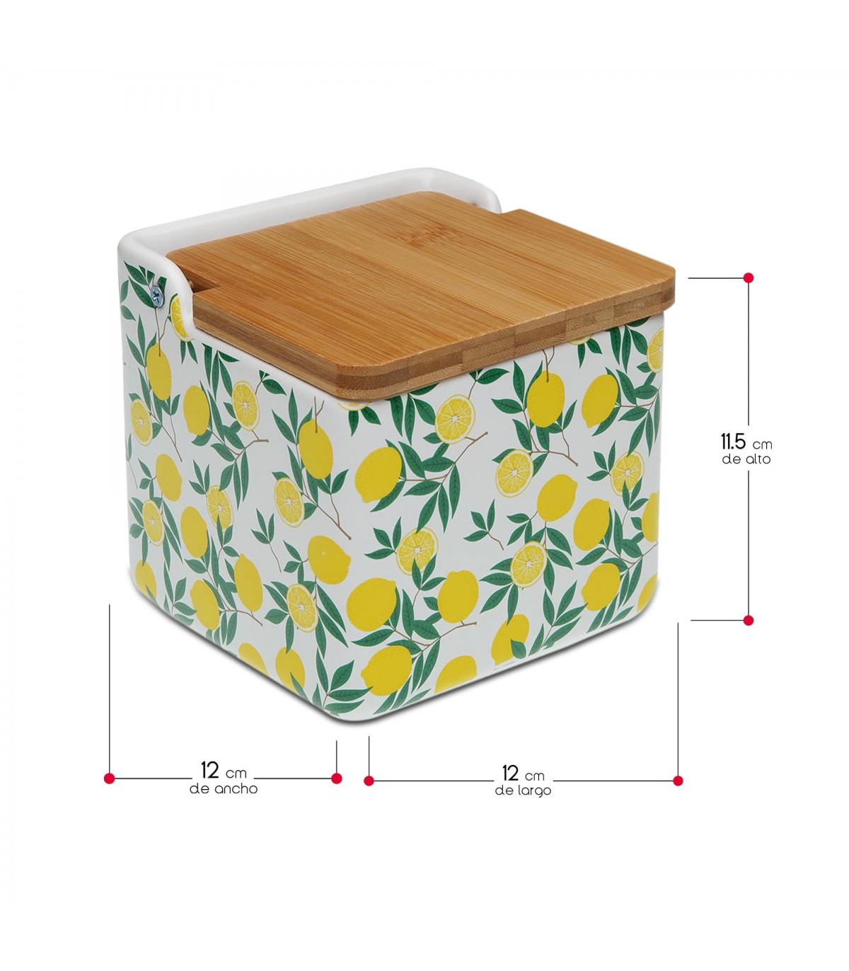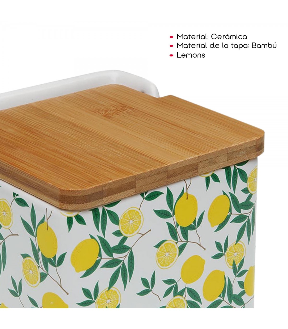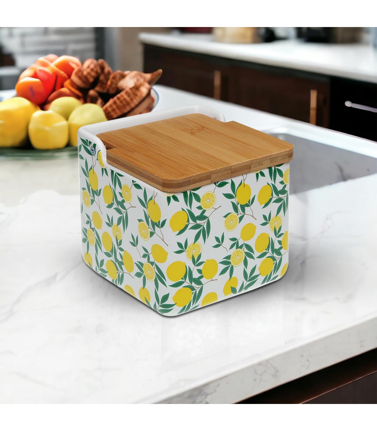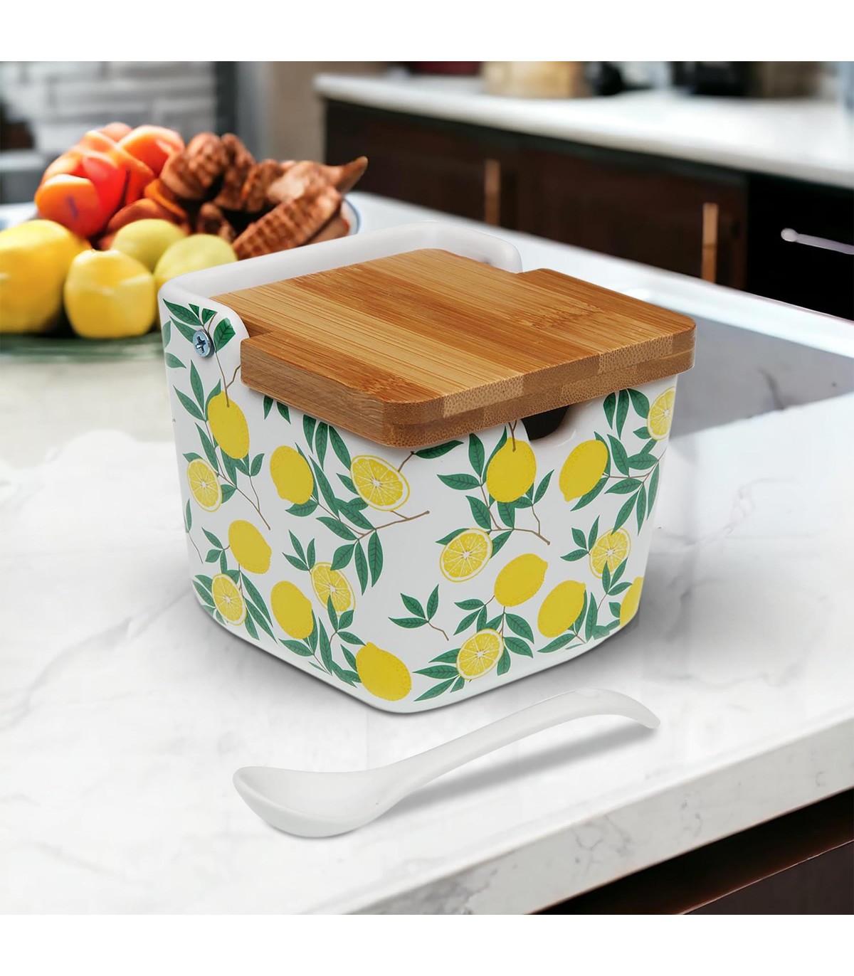 Salero o Azucarero de Cocina Lemons, Dolomita, Tapa Abatible Bambú
