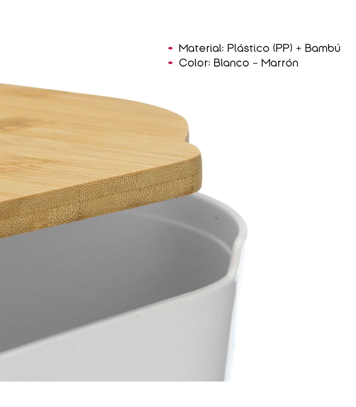 MATERIAL RESISTENTE Y DURADERO – Fabricada con plástico PP de alta calidad y tapa de bambú, esta panera garantiza resistencia, higiene y una larga vida útil.