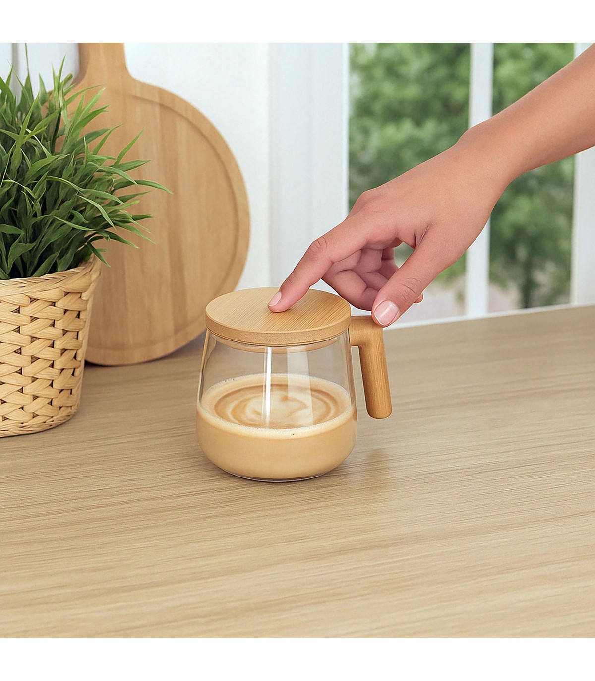 DISEÑO ELEGANTE Y FUNCIONAL. Cristal de borosilicato transparente de alta calidad combinado con tapa y mango en ABS imitación madera, brindando un look natural y moderno que se adapta a cualquier estilo de cocina u oficina.