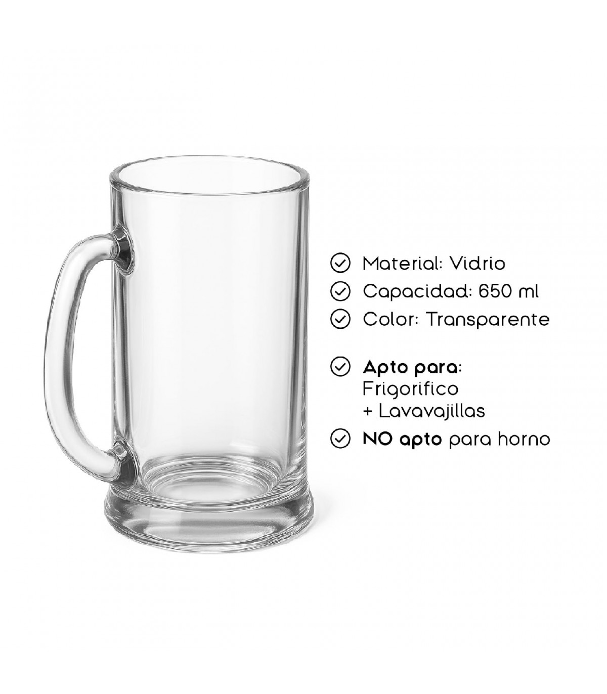 GRAN CAPACIDAD DE 650 ML. Ideal para cervezas artesanales, cócteles o refrescos, su tamaño generoso evita recargas constantes y te permite servir con estilo.