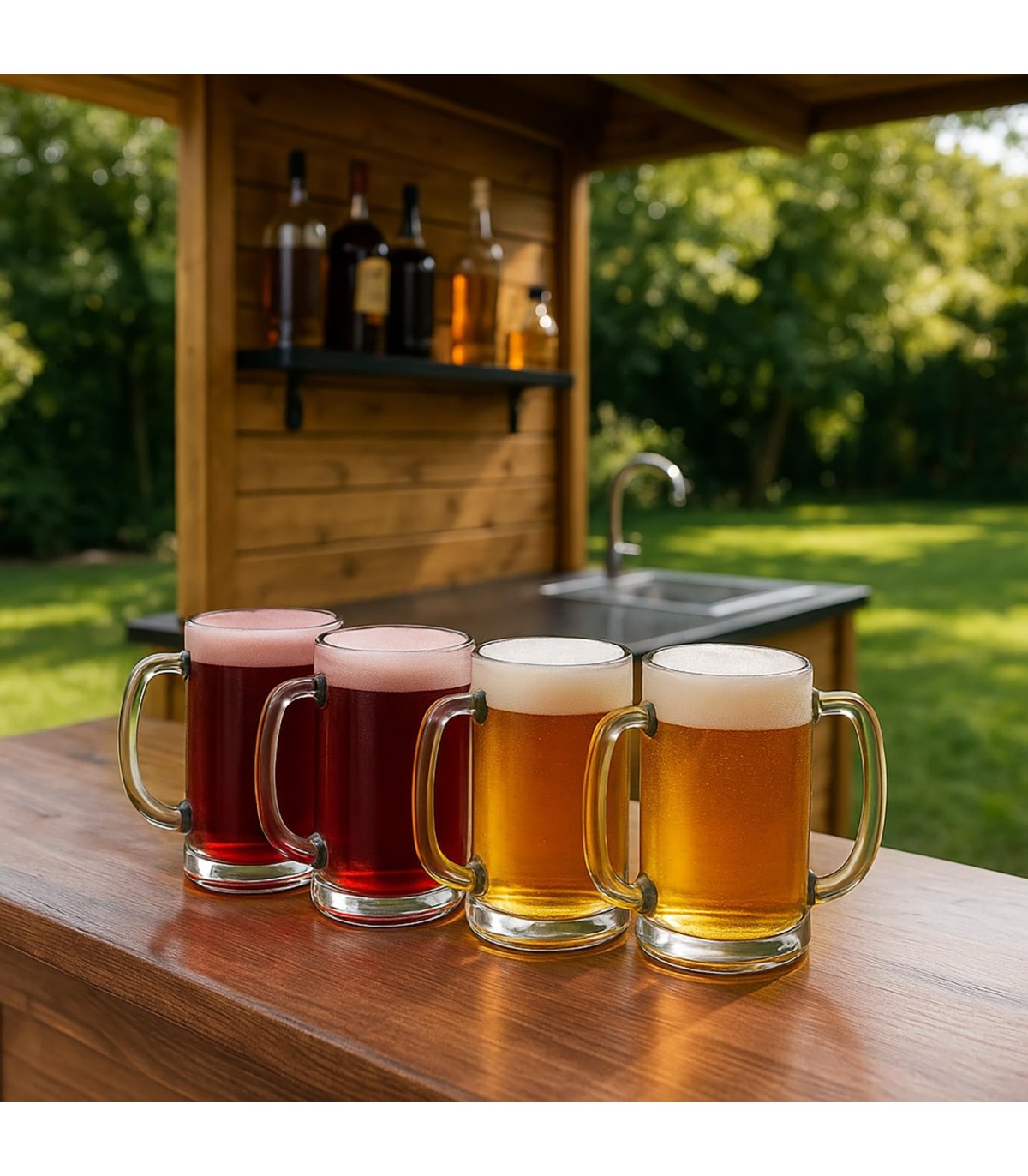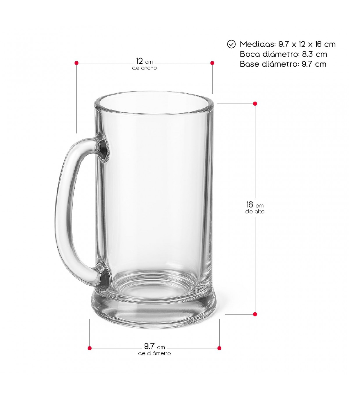 DISEÑO DE VIDRIO TRANSPARENTE. Fabricadas en vidrio resistente, su transparencia realza el color y la espuma de la cerveza, creando una experiencia visual y sensorial superior.
