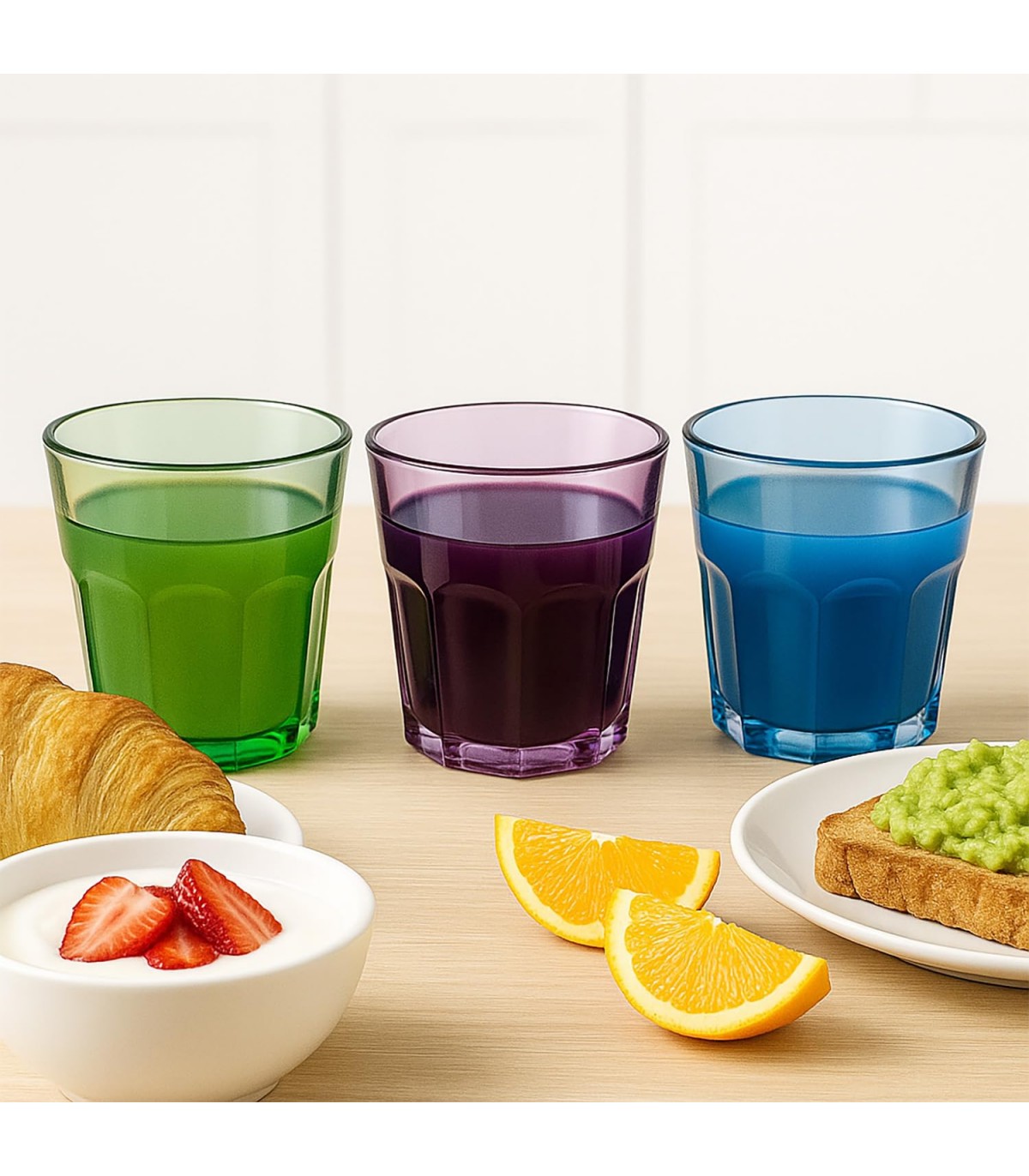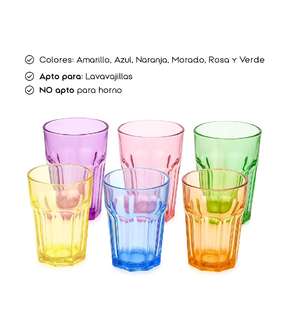 Convierte cada bebida en un momento especial con este set colorido y funcional de vasos de cristal TIENDA EURASIA. Perfectos para el hogar, oficinas o como regalo original y útil. ¡Dale vida y estilo a cada sorbo!