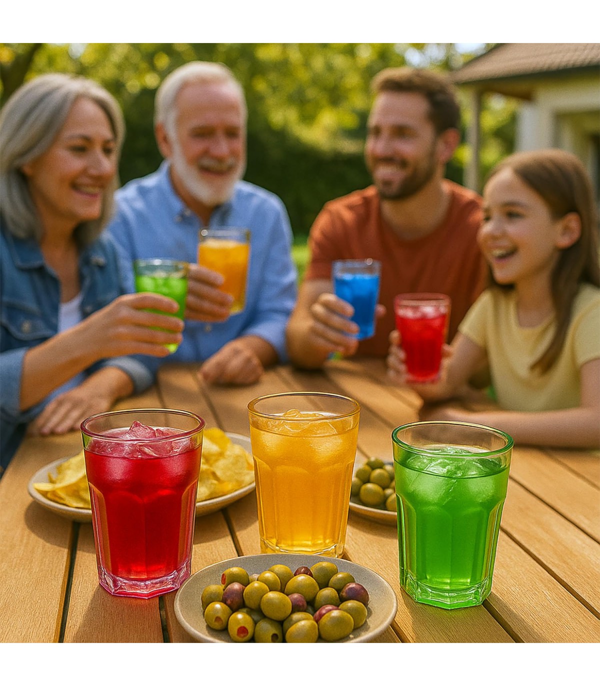 DOS TAMAÑOS FUNCIONALES PARA TODAS TUS BEBIDAS – El set incluye vasos grandes (8.5x8.5x12 cm) y pequeños (8.5x8.5x9.5 cm), perfectos para agua, zumos, refrescos o cócteles.
