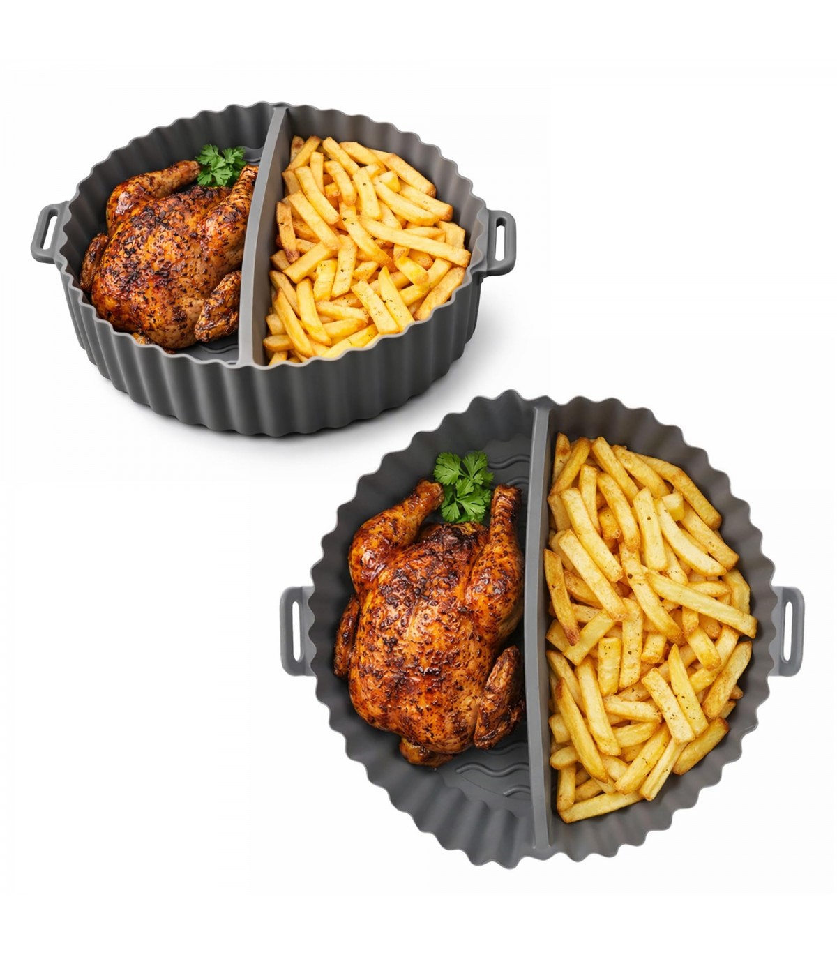 Molde para Freidora de Aire, Silicona Antiadherente, Doble Compartimento, 20x22x6.5 cm, Apto para Lavavajillas, Gris