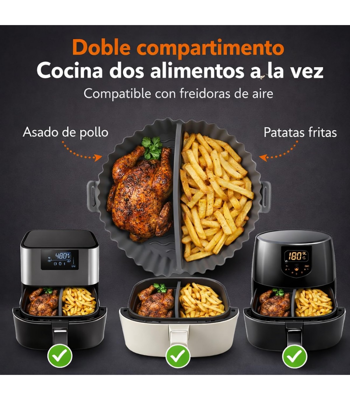Mejora tu experiencia con la air fryer gracias al Molde de Silicona Antiadherente TIENDA EURASIA, diseñado para ofrecer comodidad, limpieza y versatilidad en cada uso. Su estructura con doble compartimento permite cocinar distintos alimentos al mismo tiempo, optimizando el tiempo y el espacio. Fabricado en silicona resistente y segura, es el complemento ideal para una cocina más práctica y eficiente.