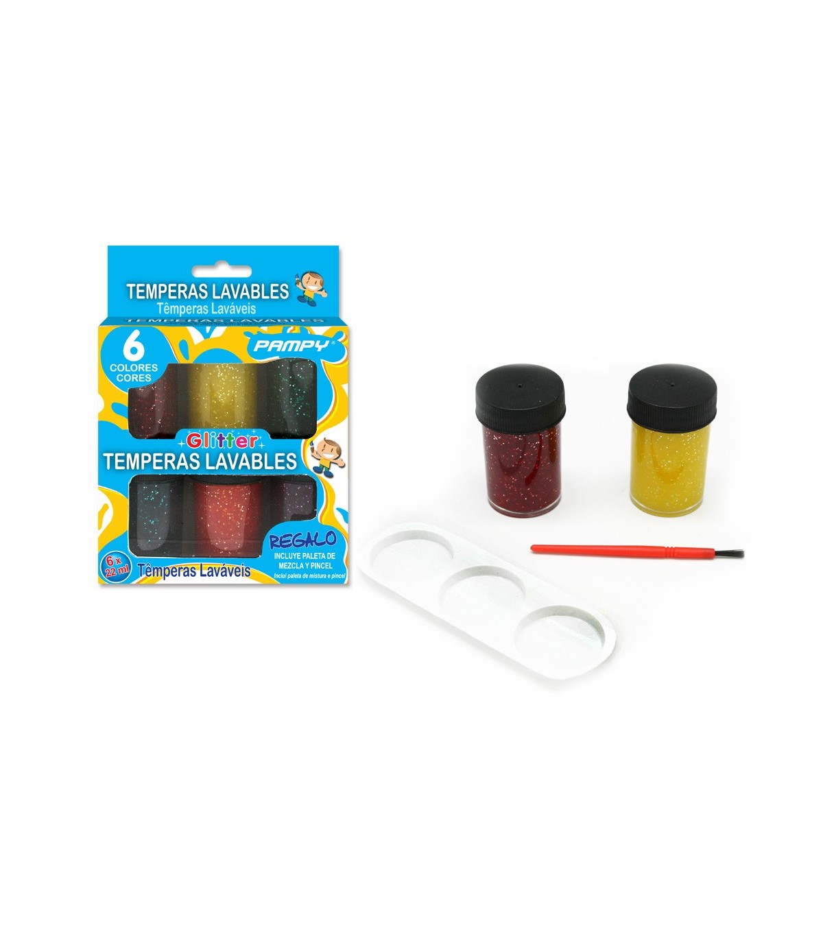 SET 6 TEMPERAS 22ML LAVABLES GLITTER