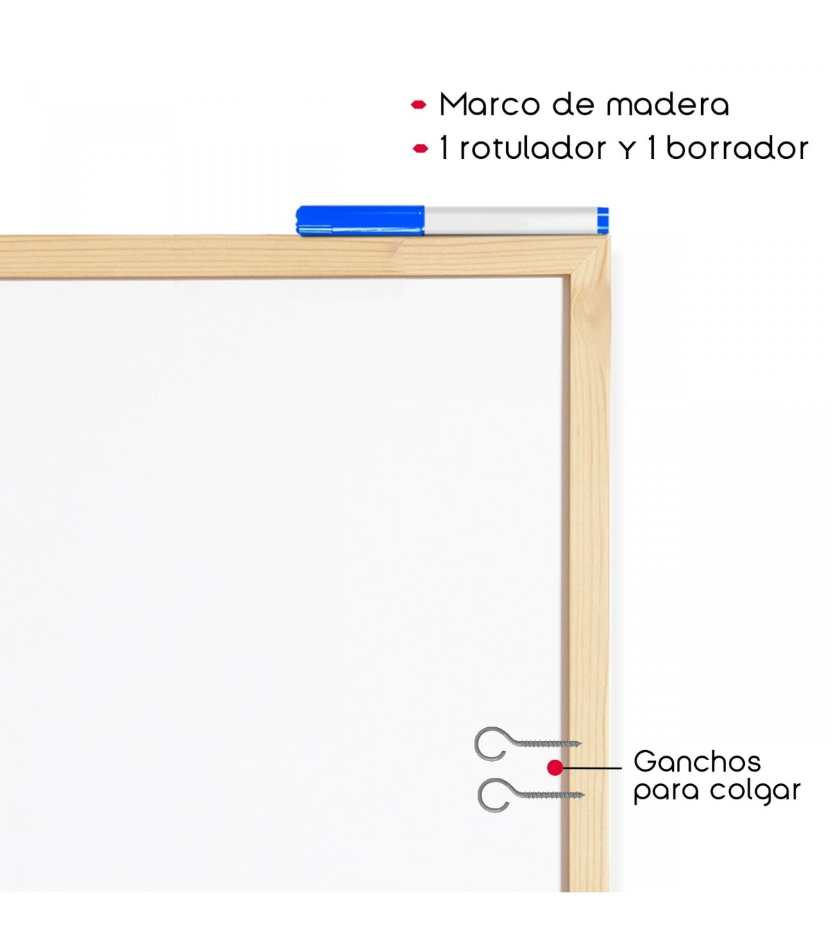 La practicidad es clave, por eso hemos incluido ganchos para colgar en la parte posterior de la pizarra. Esto te permite montarla de manera rápida y sencilla en la pared, ahorrando espacio en tu escritorio y proporcionando un acceso conveniente a tus ideas y recordatorios.