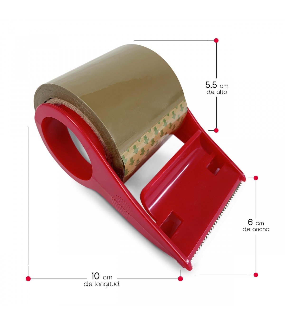Incluso en sus dimensiones compactas de 6,5 cm de largo x 10 cm de alto x 6 cm de ancho, estas precintadoras no escatiman en rendimiento. El pack incluye cinta adhesiva de alta calidad, lista para usar, lo que te permite comenzar a precintar tus paquetes de inmediato. Olvídate de buscar una cinta adhesiva adecuada