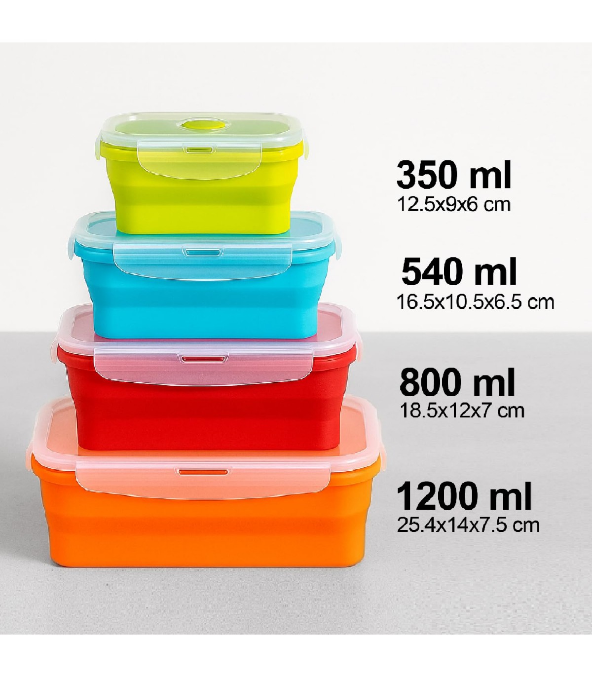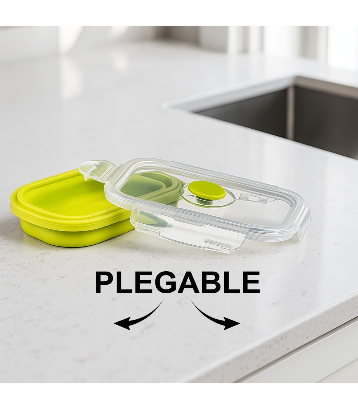 La solución perfecta para el día a día. Con el Pack de 4 Fiambreras Plegables, mantén tu cocina organizada, tus comidas frescas y disfruta de una forma más práctica y segura de almacenar y transportar tus alimentos.