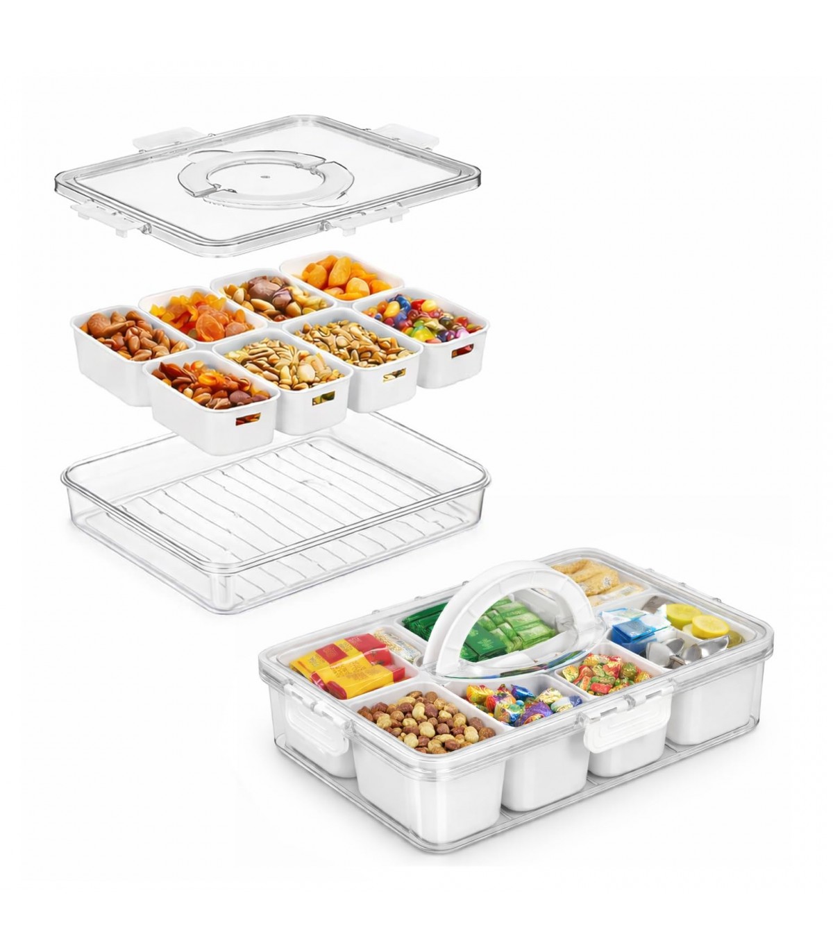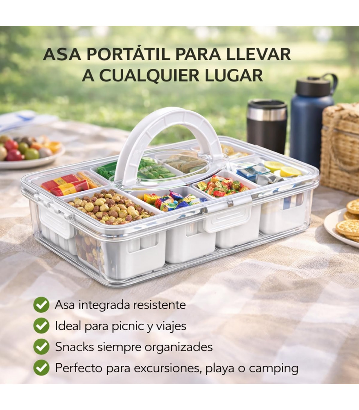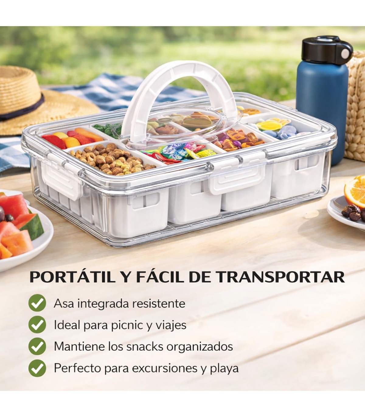 Optimiza el almacenamiento en tu cocina con la Caja Organizadora Hermética TIENDA EURASIA, diseñada para ofrecer máxima organización, frescura y comodidad. Con una capacidad de 3.2 litros y opciones de 4 u 8 compartimentos, este recipiente es ideal para mantener alimentos y pequeños objetos perfectamente clasificados. Su diseño funcional con tapa hermética y asa facilita tanto el uso diario como el transporte.
