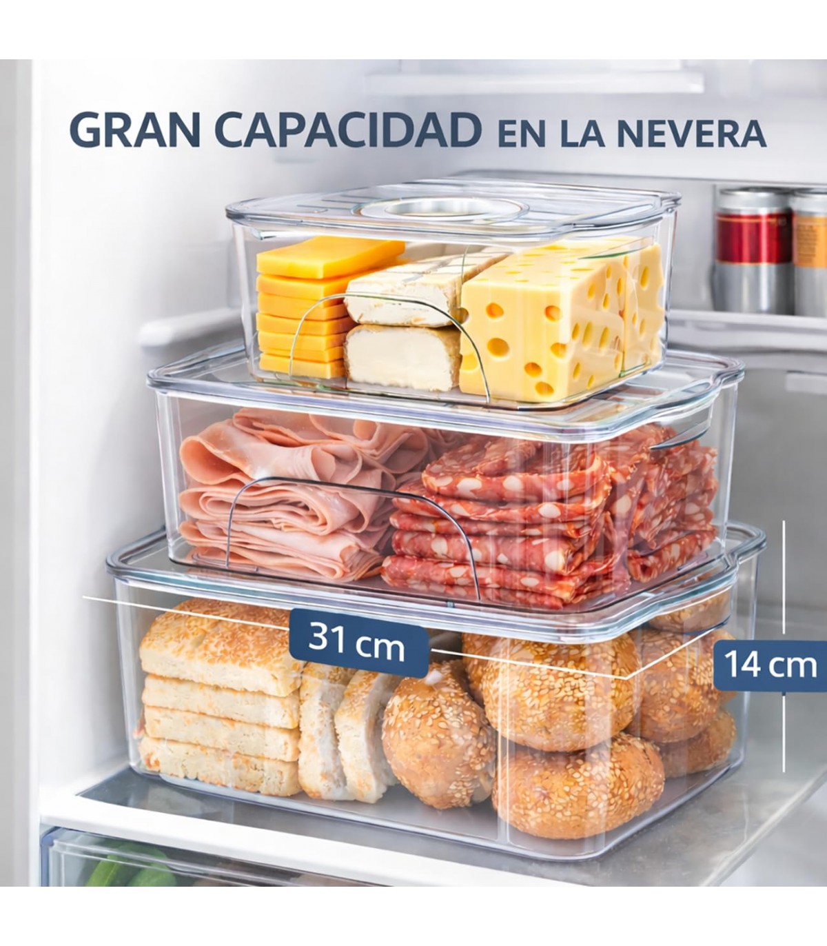 DISEÑO TRANSPARENTE PARA VISIBILIDAD TOTAL. Permite identificar fácilmente el contenido sin necesidad de abrir los recipientes, ahorrando tiempo y mejorando la organización.