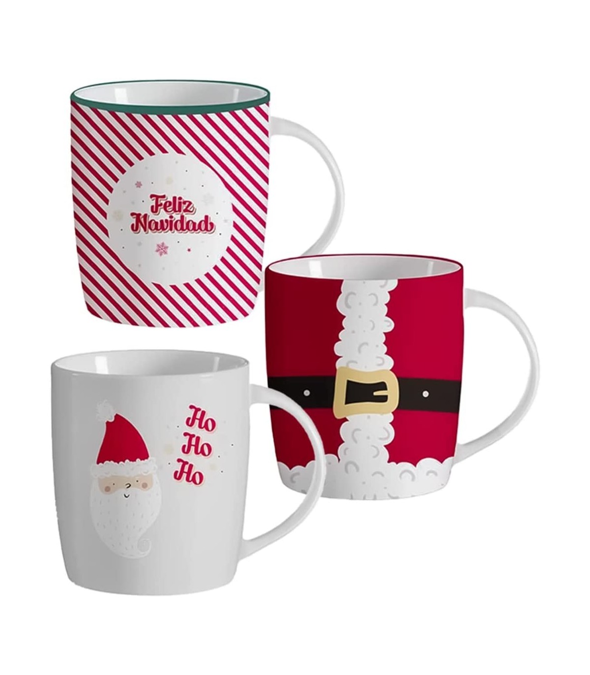 Añade un toque de magia navideña a tu decoración con estas hermosas tazas de Navidad. El pack contiene 3 tazas de 350 ml. Las tazas están hechas de cerámica. Los tazas son perfectos para desayunar en tu hogar o como regalo navideño. ¡Añade un toque mágico a tus desayunos navideños con estas tazas! ¡No esperes más para darle a tu hogar una sensación navideña!