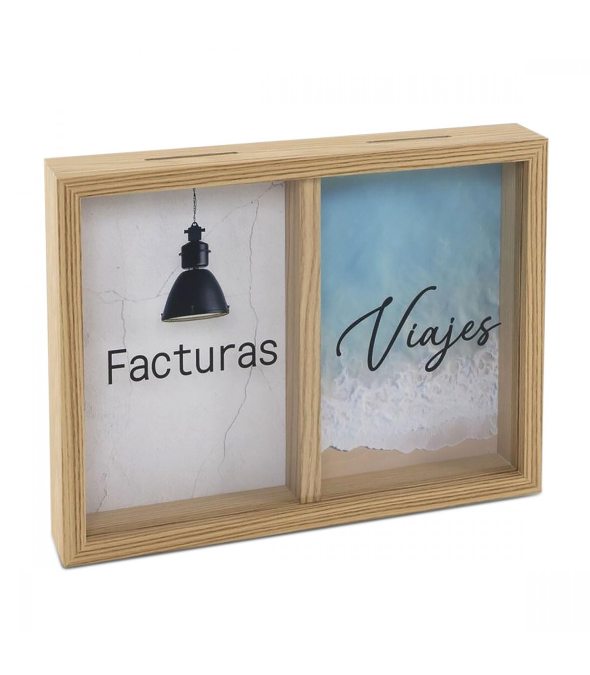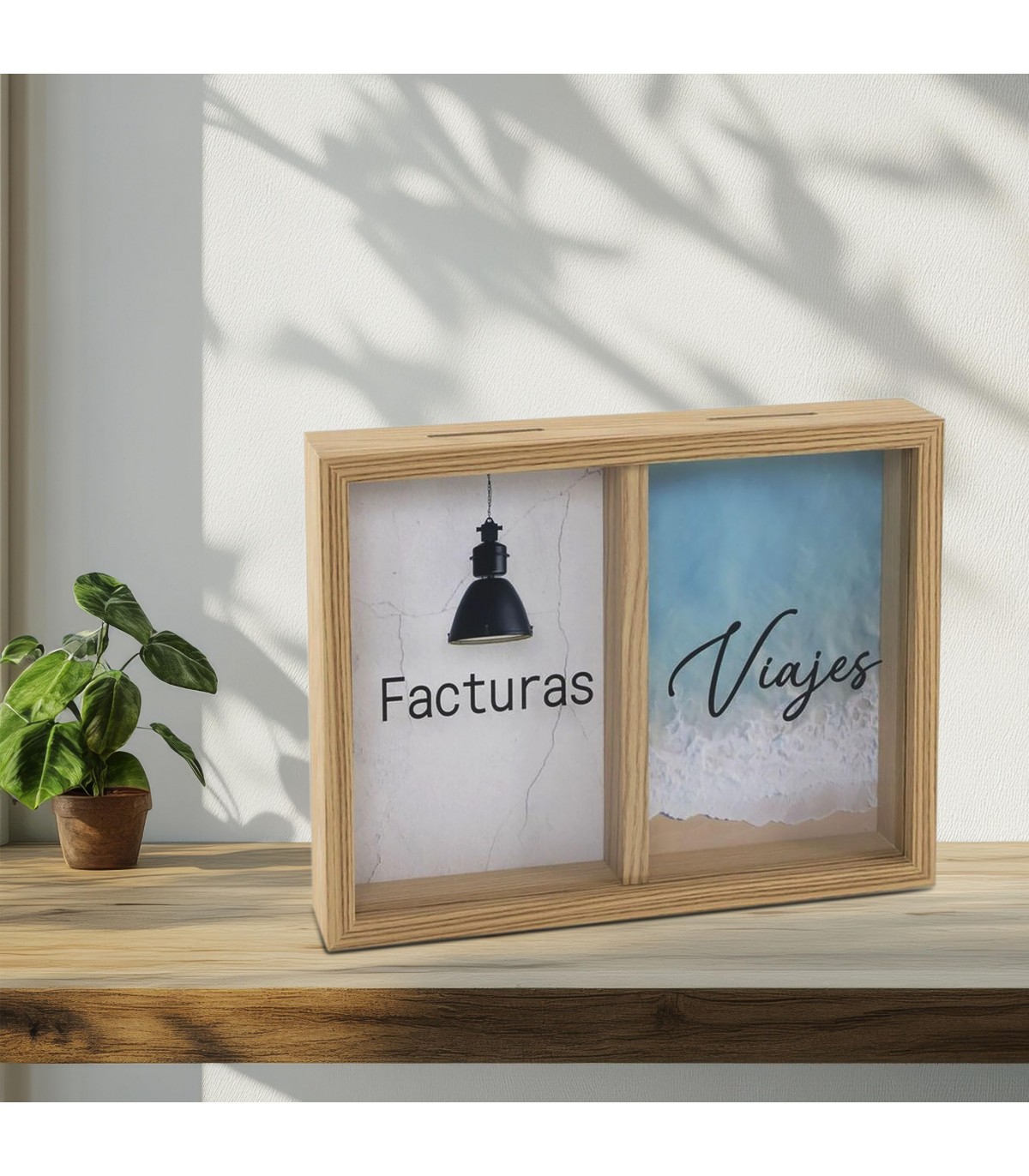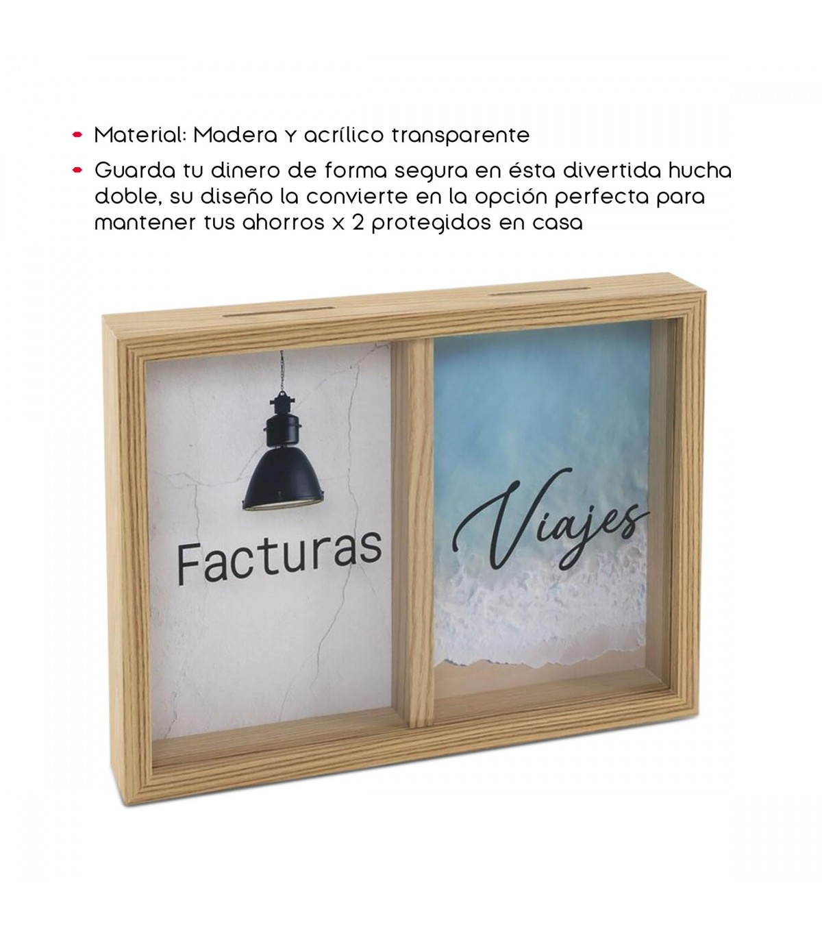 Hucha Doble, Rectangular, 28x4x22 cm, Madera y Acrílico Transparente