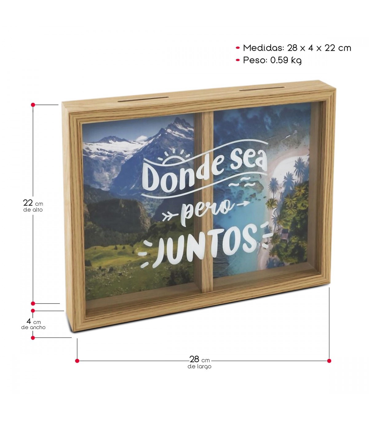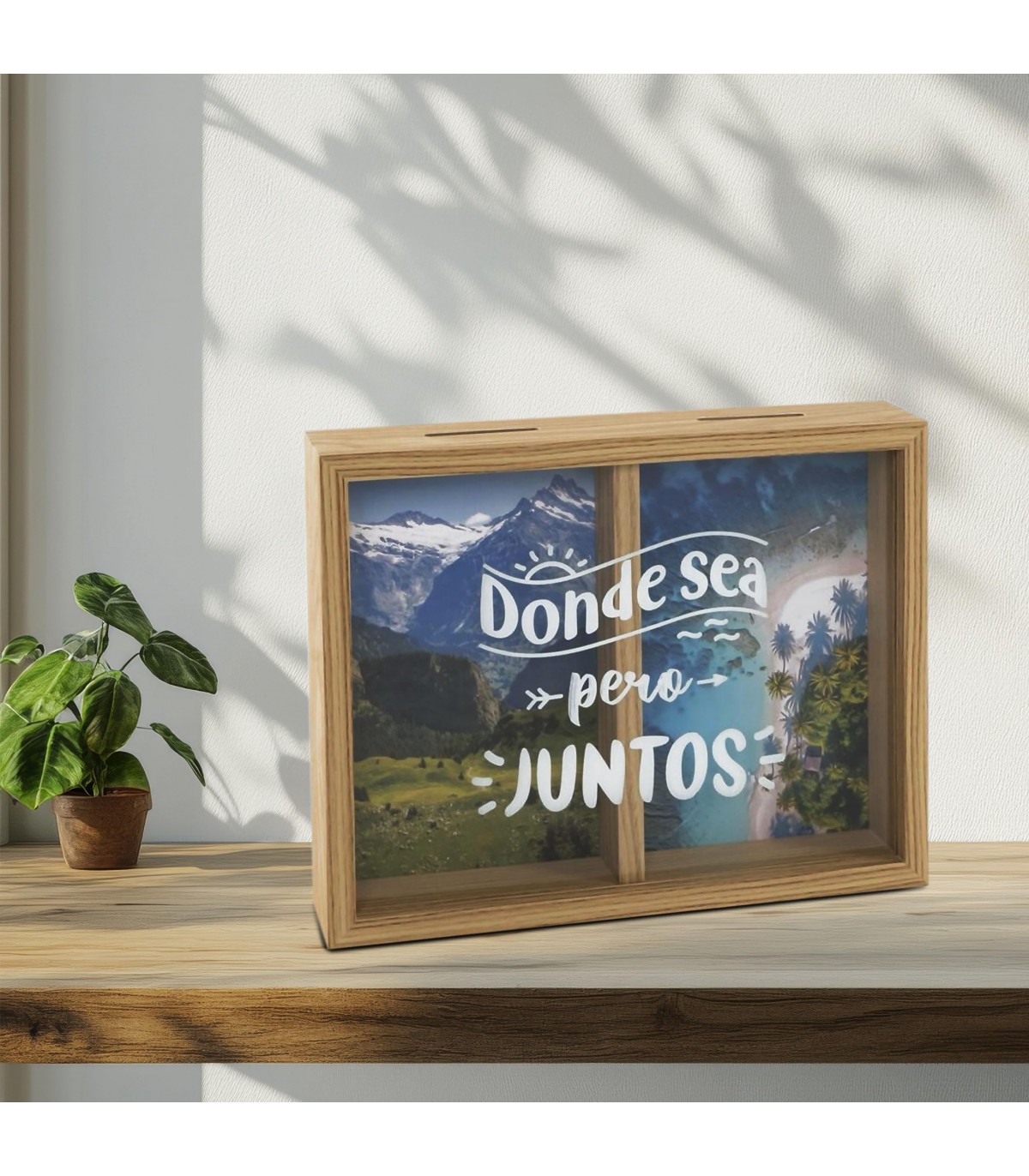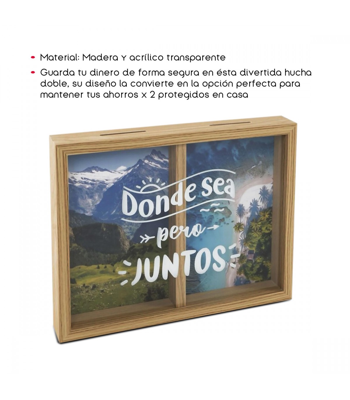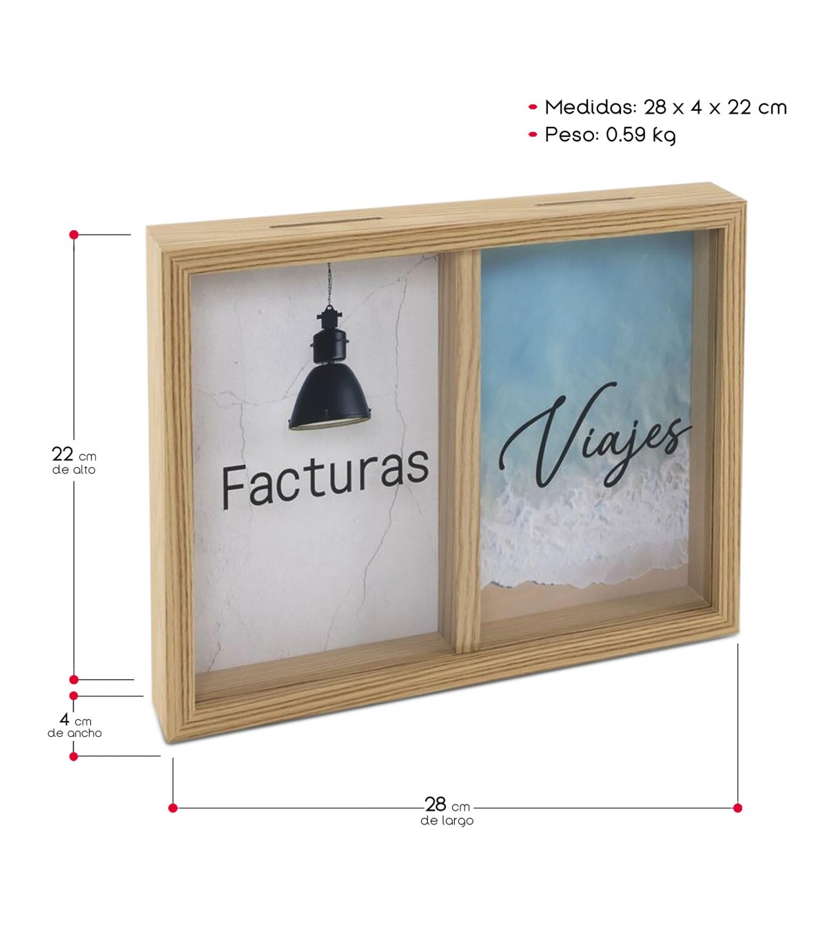Hucha Doble, Rectangular, 28x4x22 cm, Madera y Acrílico Transparente