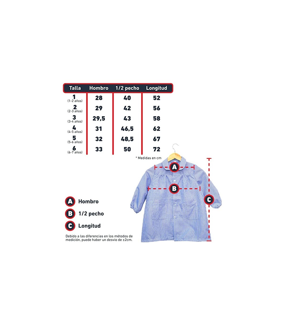 TIENDA EURASIA® Bata Escolar Infantil - Babi Escolar con Botones Estampado a Cuadros - Manga Larga - Disponible en Colores y Medidas Diferentes.