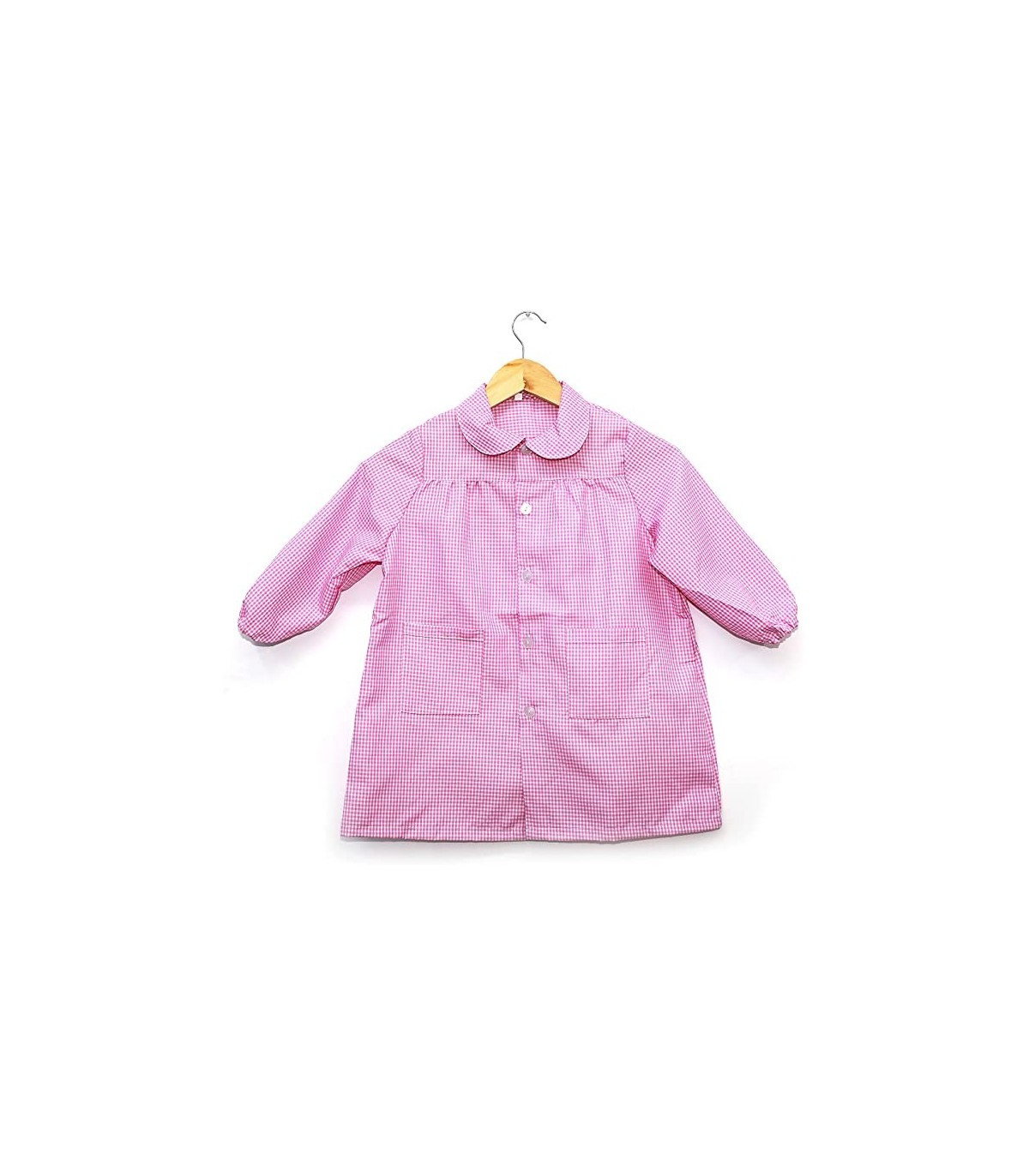 TIENDA EURASIA® Bata Escolar Infantil - Babi Escolar con Botones Estampado a Cuadros - Manga Larga - Disponible en Colores y Medidas Diferentes (T - 2 a 3 Años, Rosa)