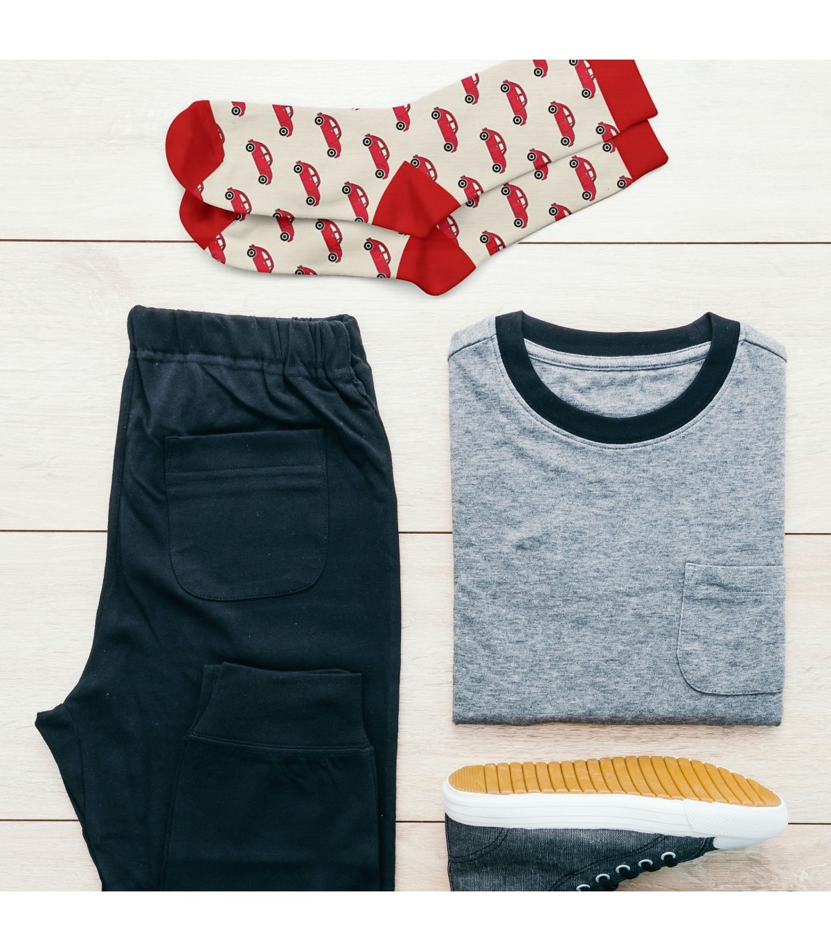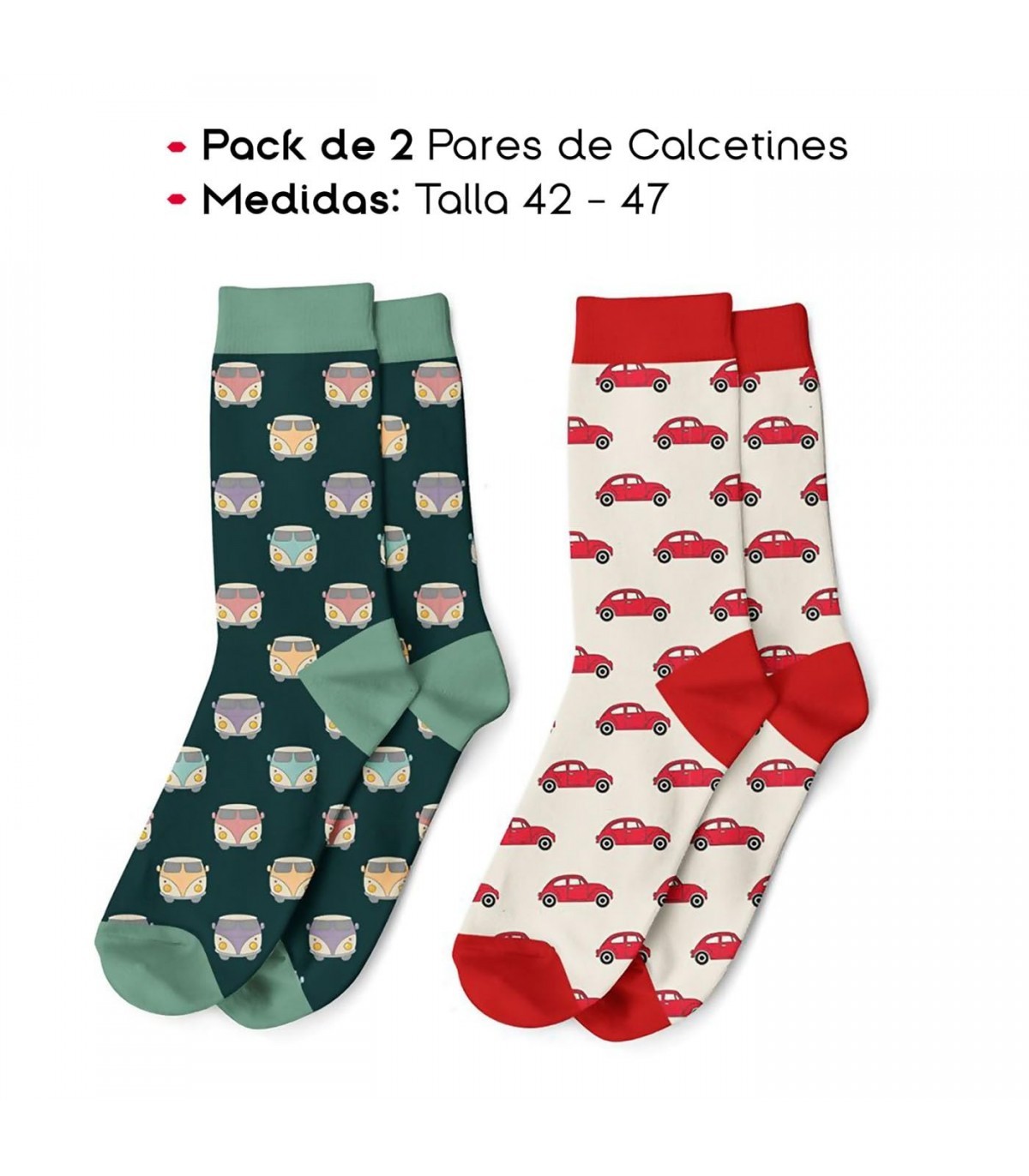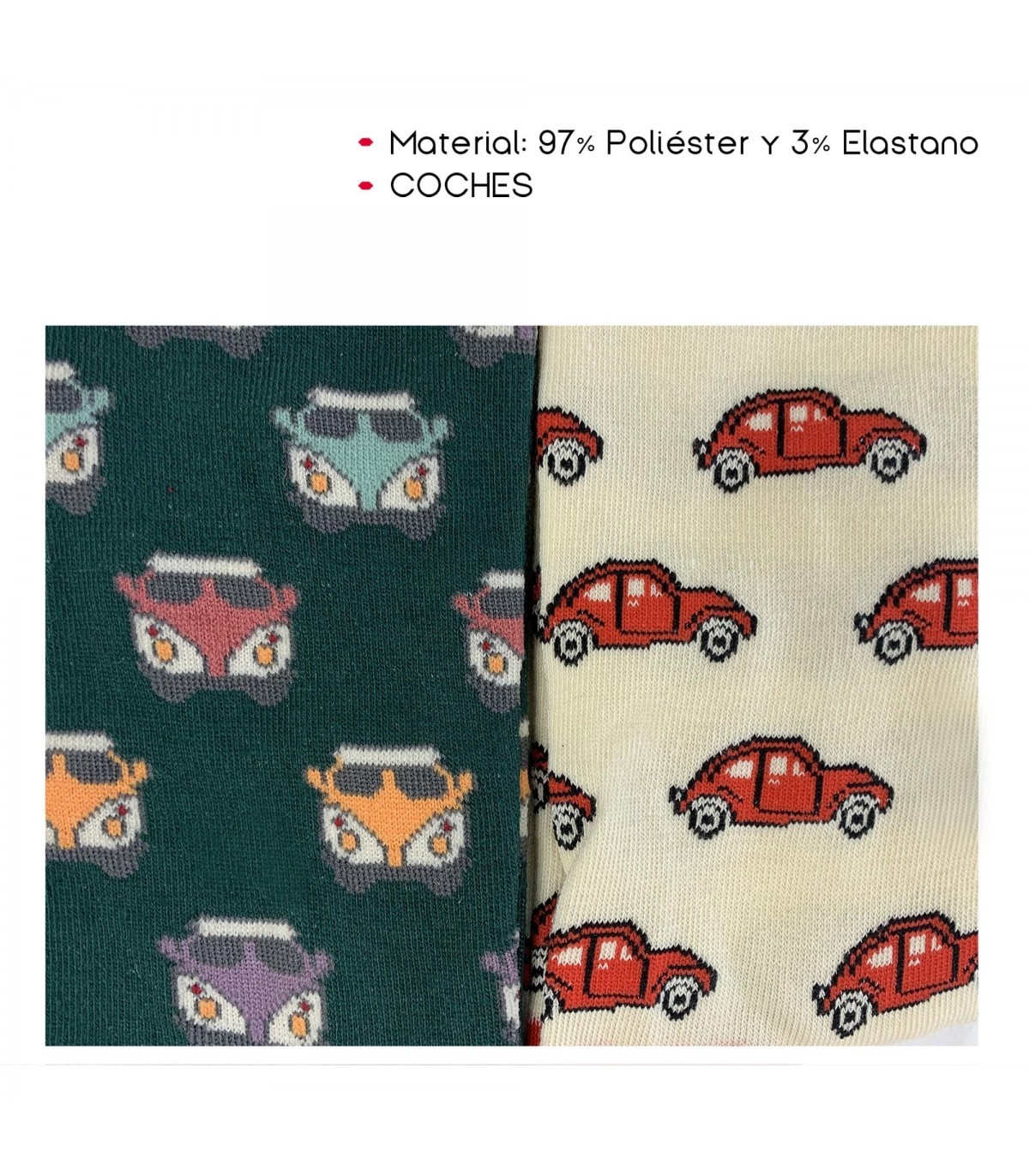 Pack de 2 pares Calcetines Altos Hombre, Talla 42-47, 97% Poliéster (Coches)
