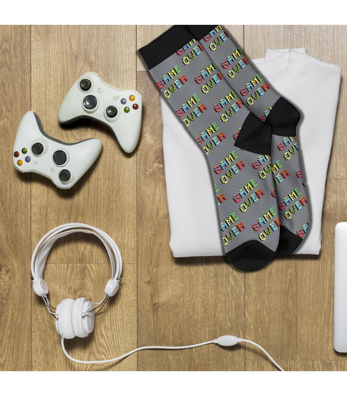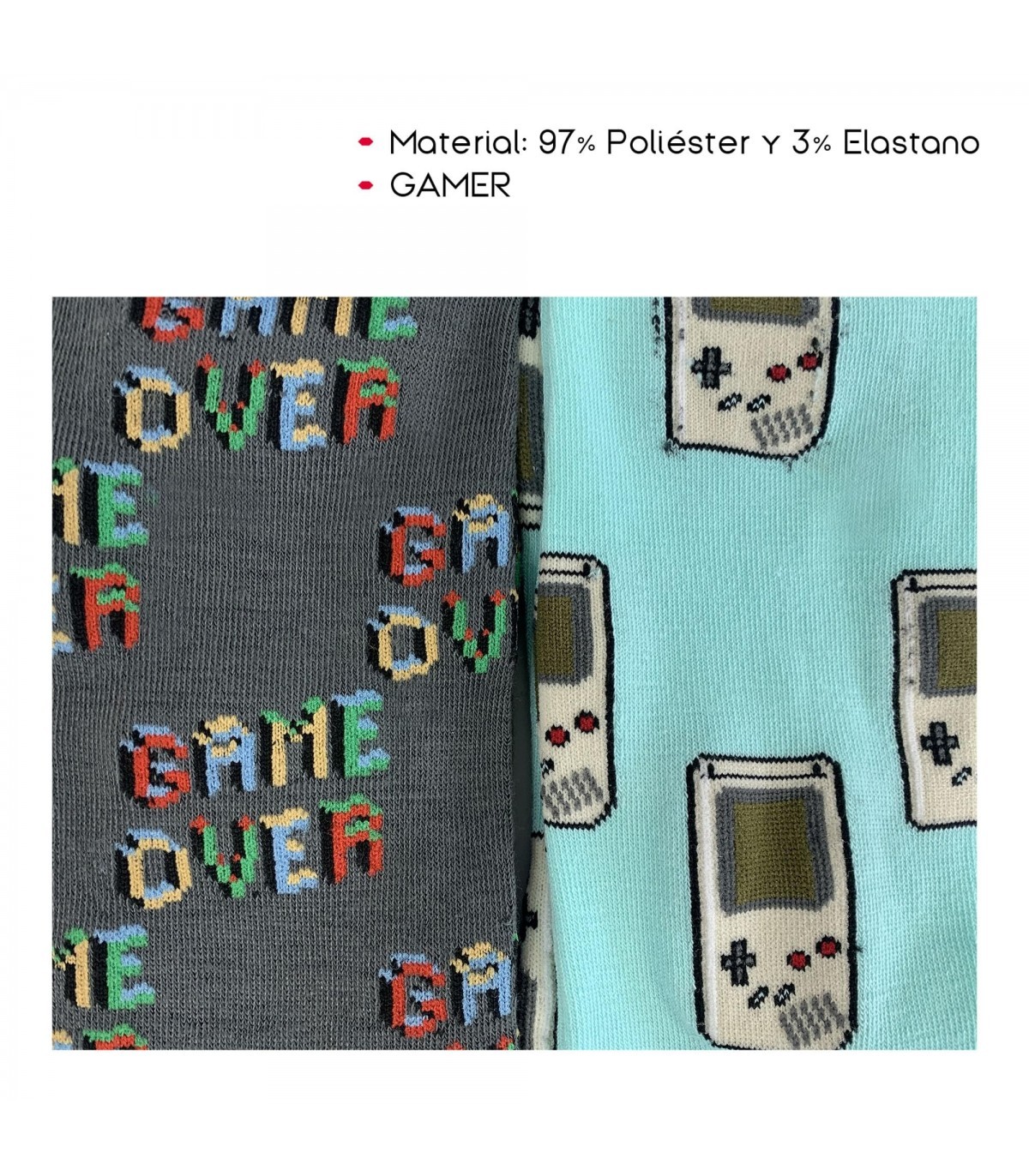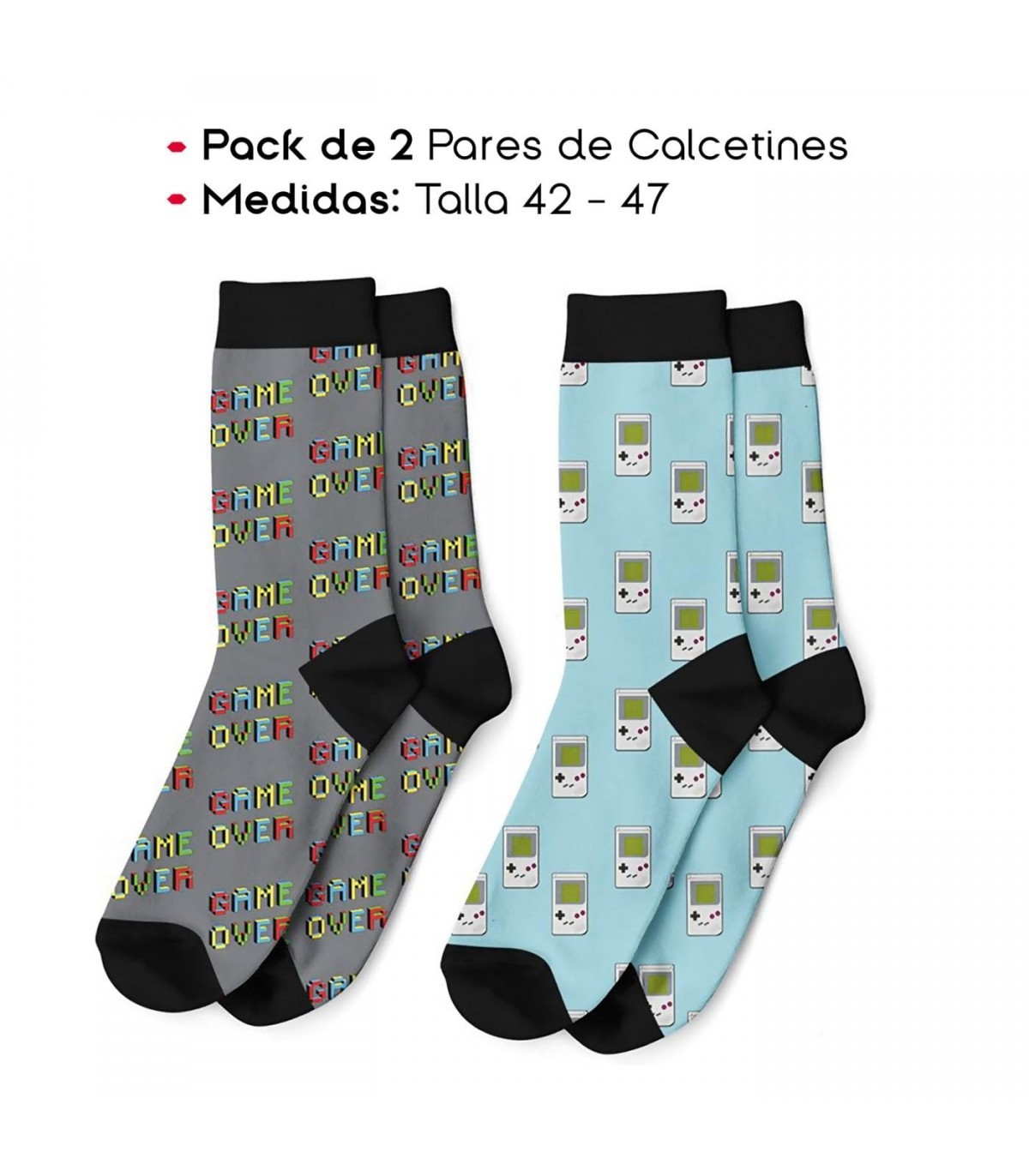 Pack de 2 pares Calcetines Altos Hombre, Talla 42-47, 97% Poliéster (Gamer)