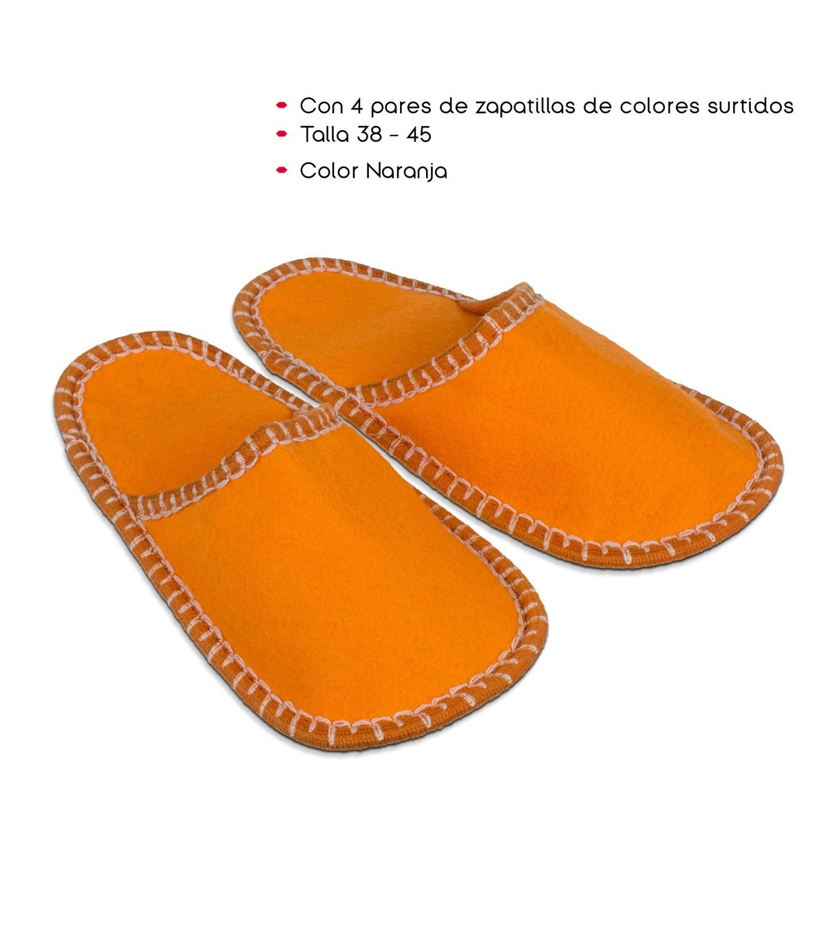 ? DISEÑO VERSÁTIL Y ATRACTIVO. Incluye cuatro pares de zapatillas en colores naranja, verde, azul y negro, perfectos para adaptarse a todos los gustos y estilos.