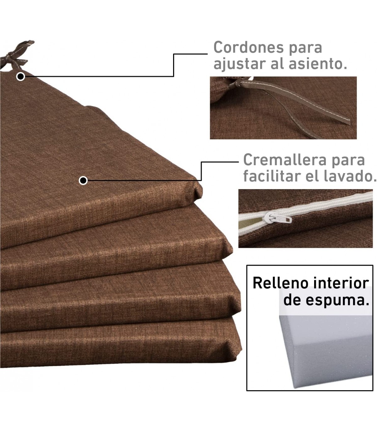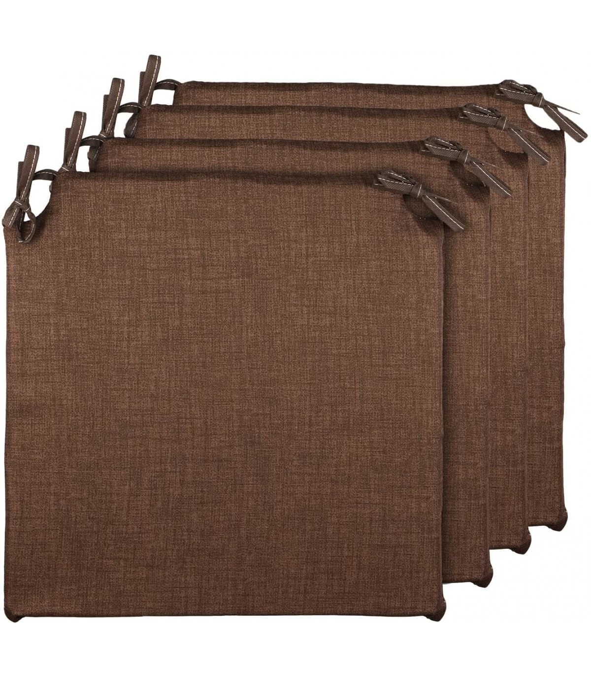 TIENDA EURASIA® Pack 4 Cojines para Sillas - Estampados Lisos con 2 Cintas de Sujeción - Ideal para Interiores y Exteriores - 40 x 40 x 3 cm (Chocolate)