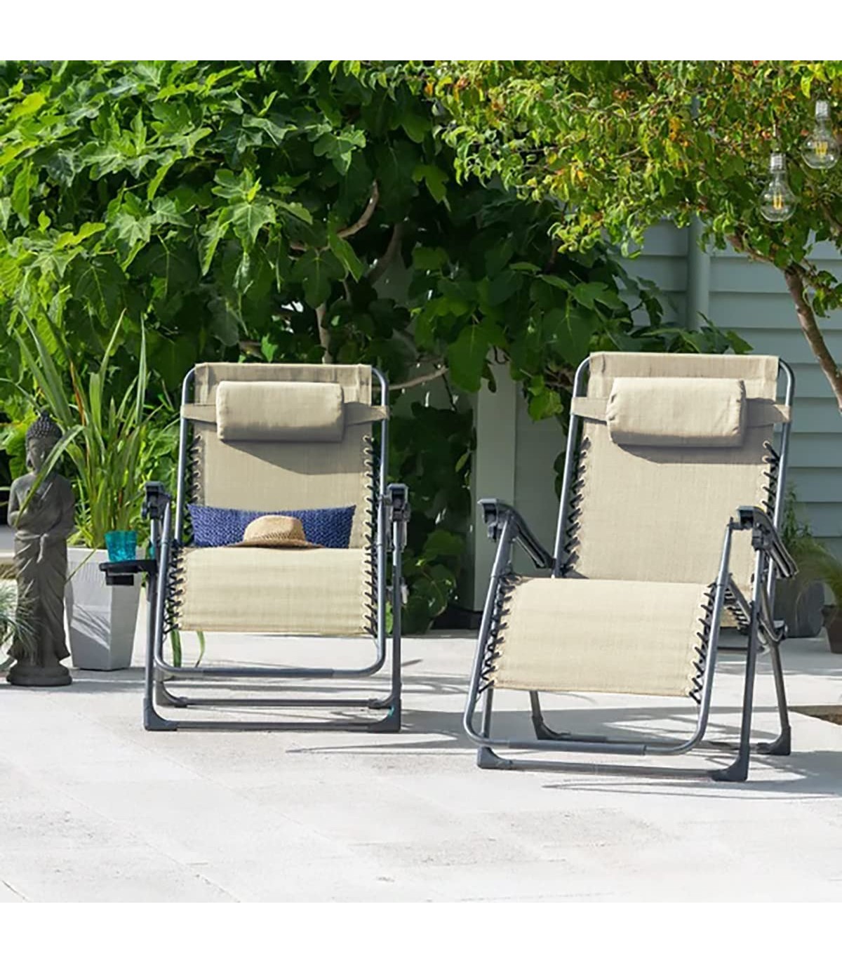 TIENDA EURASIA® Pack 2 - Tumbona Plegable Multi-Posiciones para Jardín - 95x65x105cm - Ideal para Uso en la Terraza o Jardín (Beige)