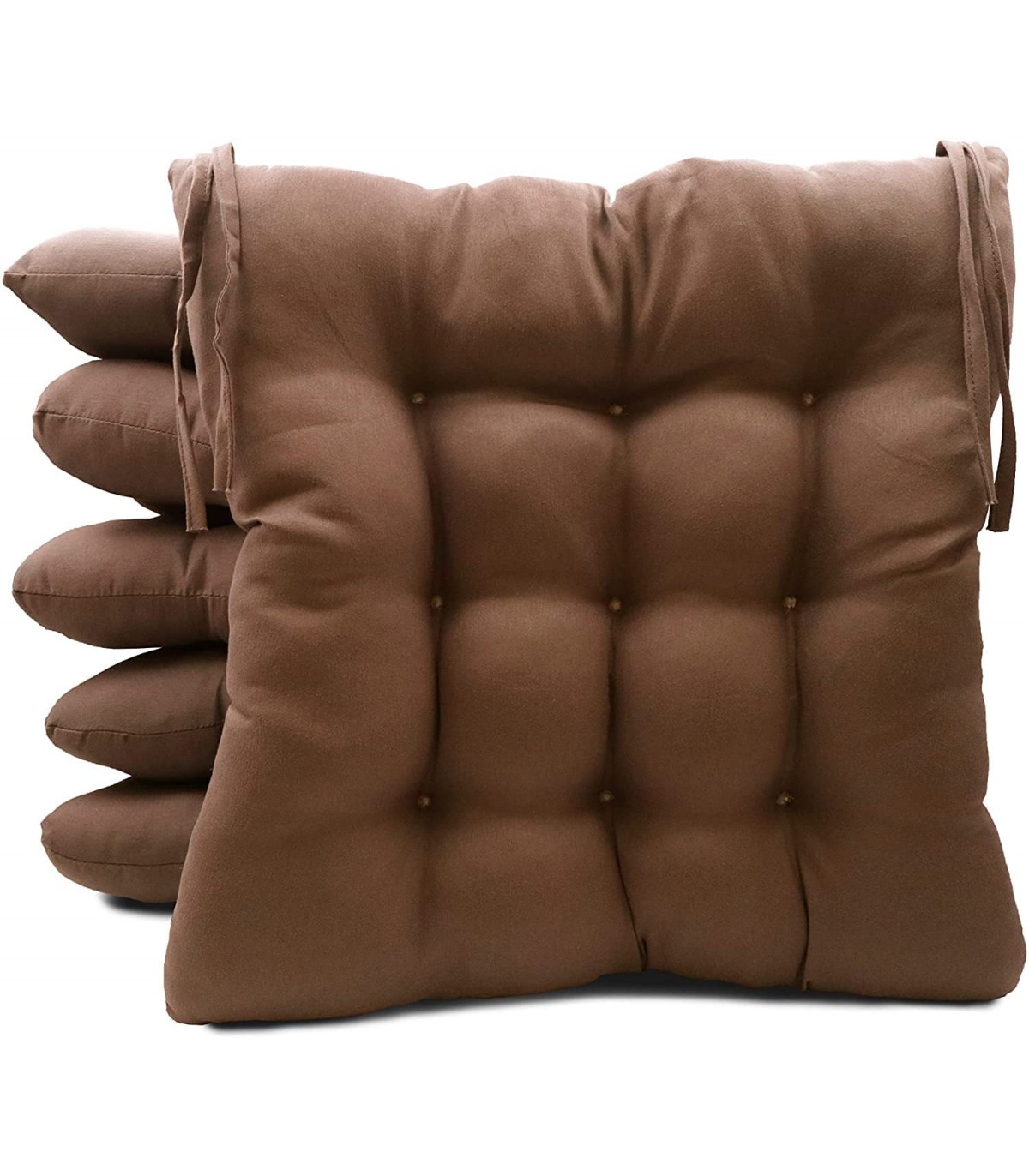 TIENDA EURASIA® Pack 4 Cojines para Sillas - Estampados Lisos con 2 Cintas de Sujeción - Ideal para Interiores y Exteriores - 40 x 40 x 3 cm (Chocolate)
