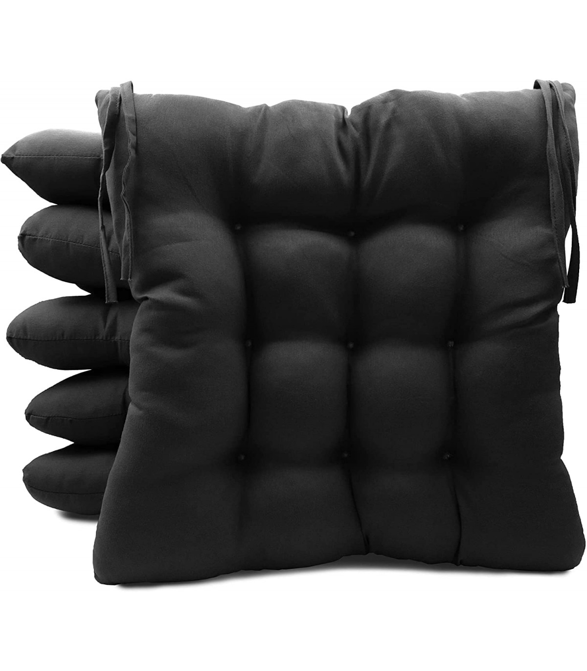 TIENDA EURASIA® Pack 6 Cojines para Sillas de Terraza - Funda de 100% Loneta Lavable y Relleno de Fibra Hueca Siliconada Acolchada - 40 x 40 x 5 cm (Chocolate)