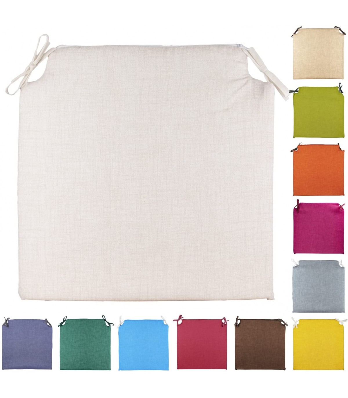 Pack 4 Cojines para Sillas - Estampados Lisos con 2 Cintas de Sujeción - Ideal para Interiores y Exteriores - 40 x 40 x 3 cm