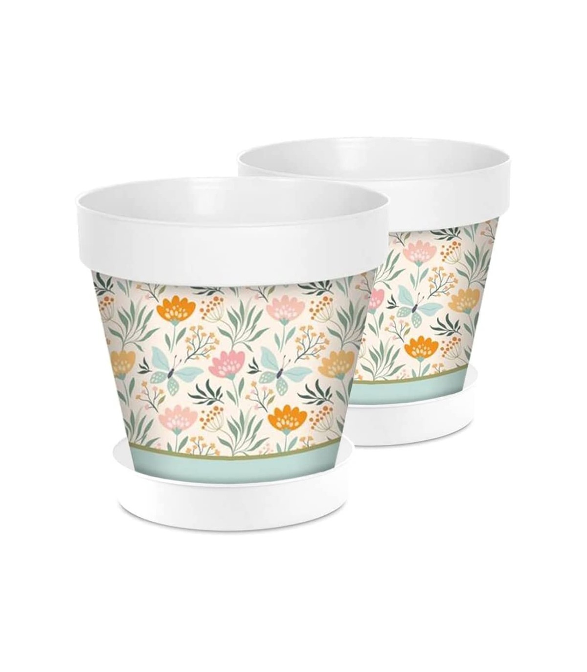 Pack de 2 Juegos de Maceta y Plato, Fabricados en PP (Ø17 cm, Mariposas)
