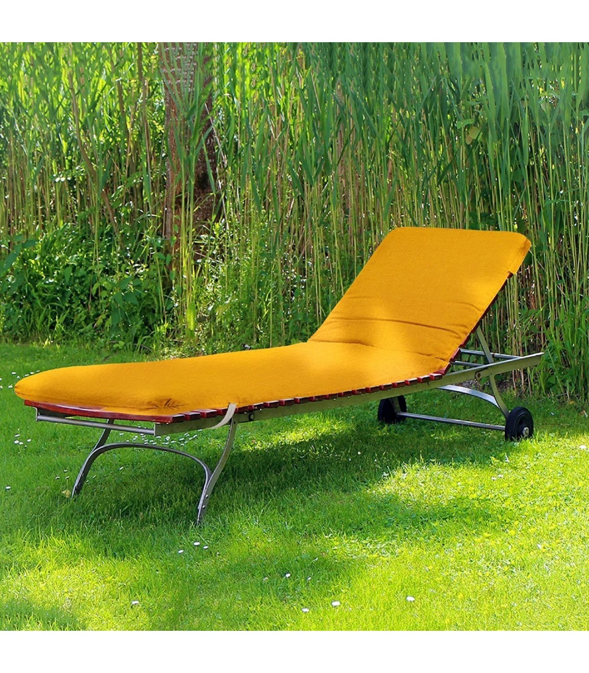 Cojín Tumbona de Jardín, Relleno de Fibra, Funda Lavable (170 x 50 x 6 cm, Amarillo)