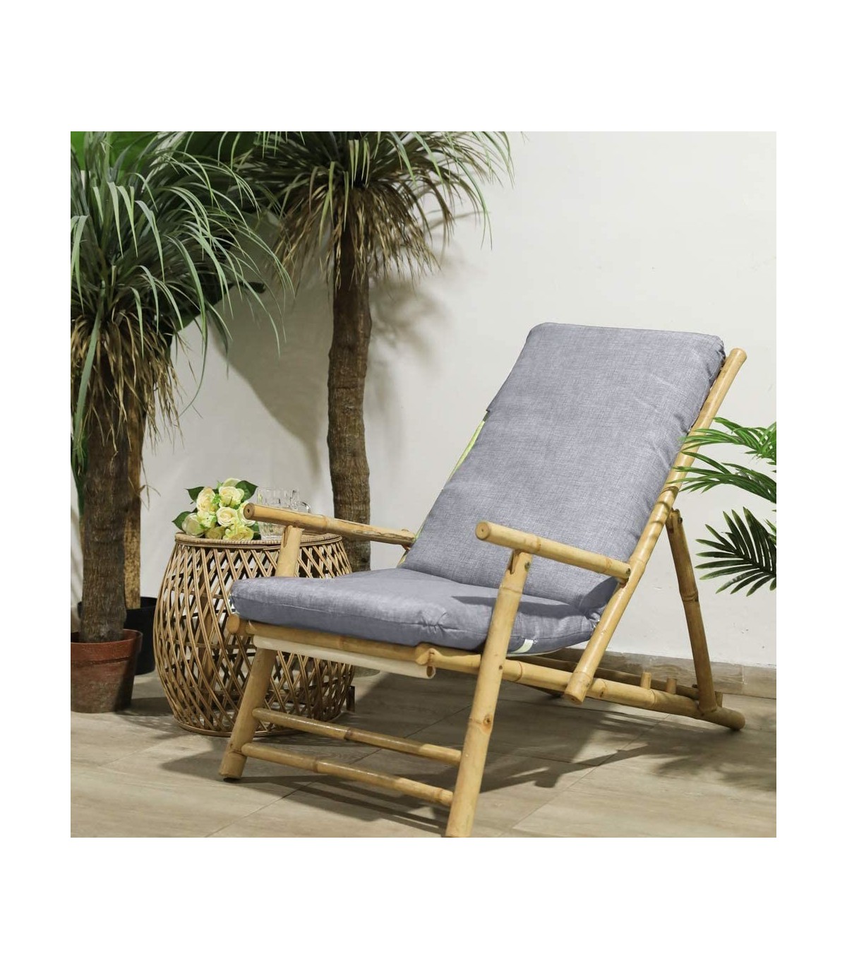 Colchoneta para Tumbona Relleno de Fibra y Funda Lavable (120x50cm, Gris)