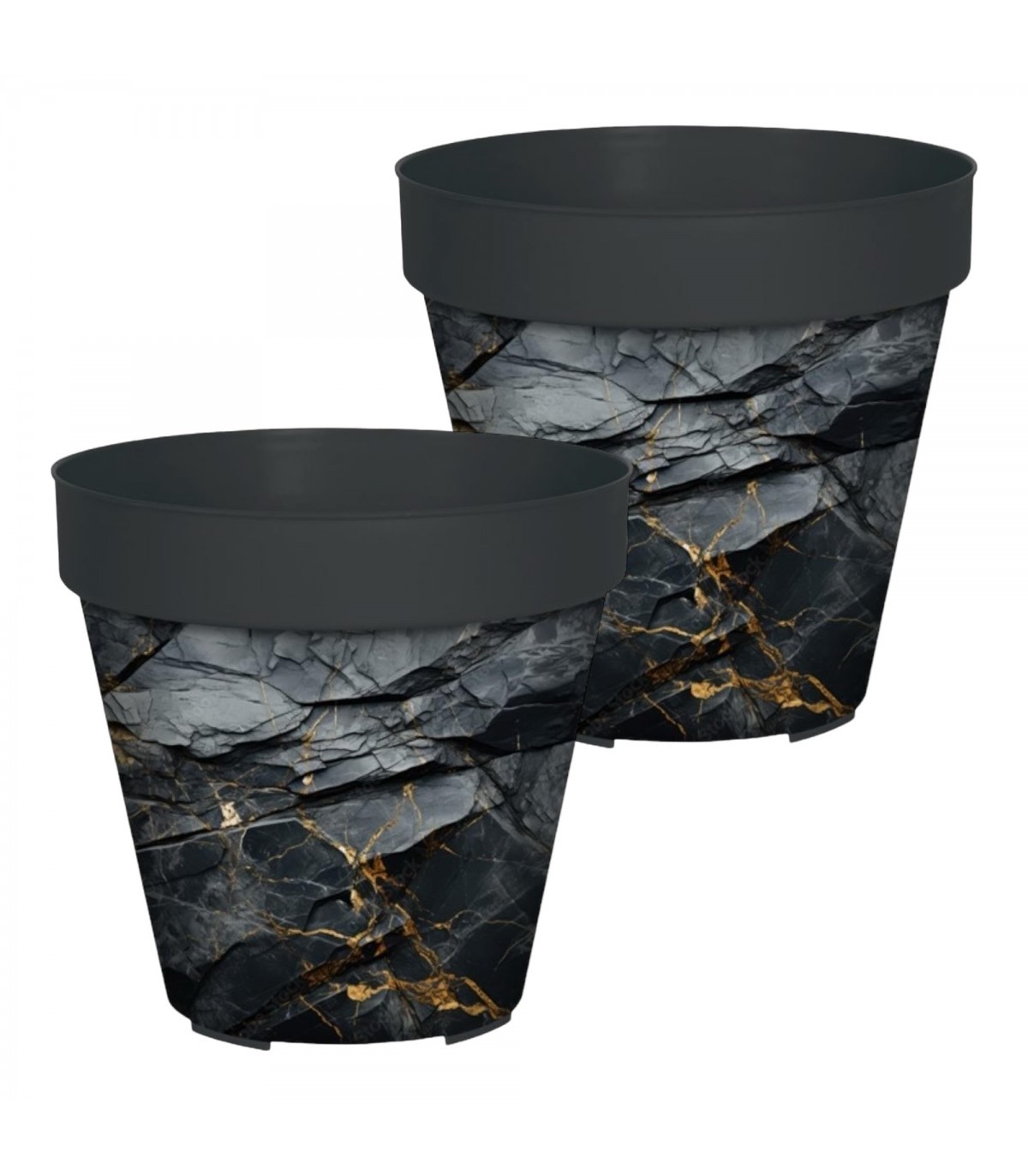 Pack 2 Macetas Decorativas de Interior, Plástico (Ø15 x 14,5 cm, Antracita)