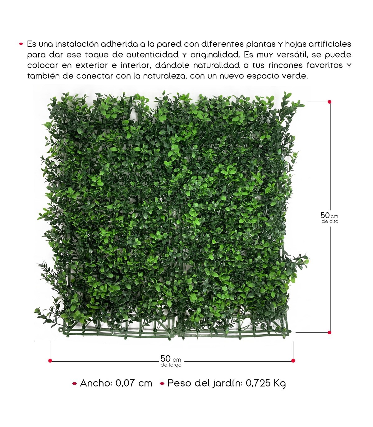 ¡Renueva tu espacio con el jardín vertical artificial de Tienda Eurasia! Su diseño natural, facilidad de instalación y versatilidad lo convierten en la opción perfecta para embellecer tu hogar o terraza. Disfruta de un entorno verde y fresco sin complicaciones. ¡Haz que tus paredes cobren vida con este elegante jardín vertical!