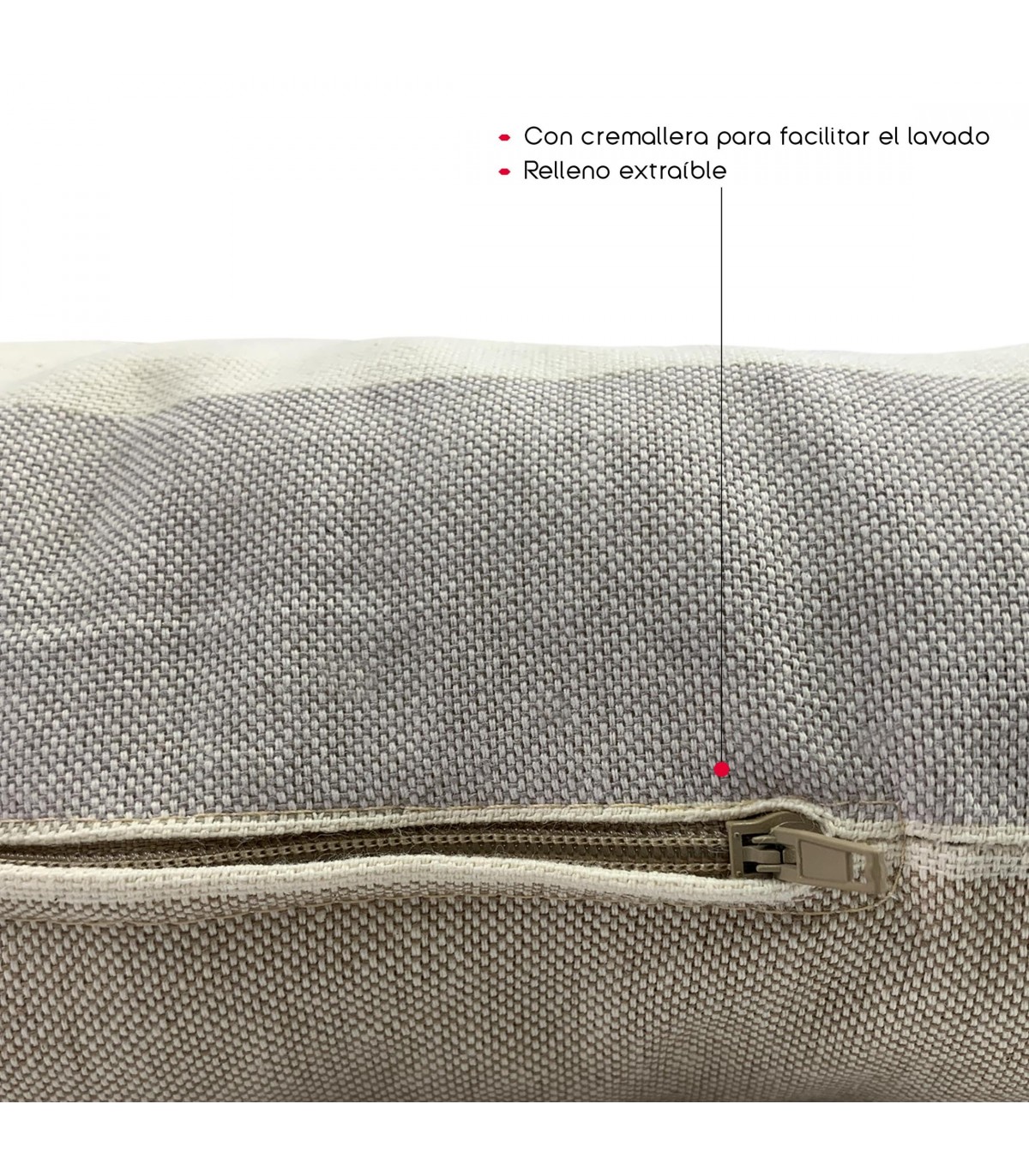 FUNDA LAVABLE CON CREMALLERA: Funda de tela con cremallera oculta, fácil de retirar para una limpieza rápida y cómoda.