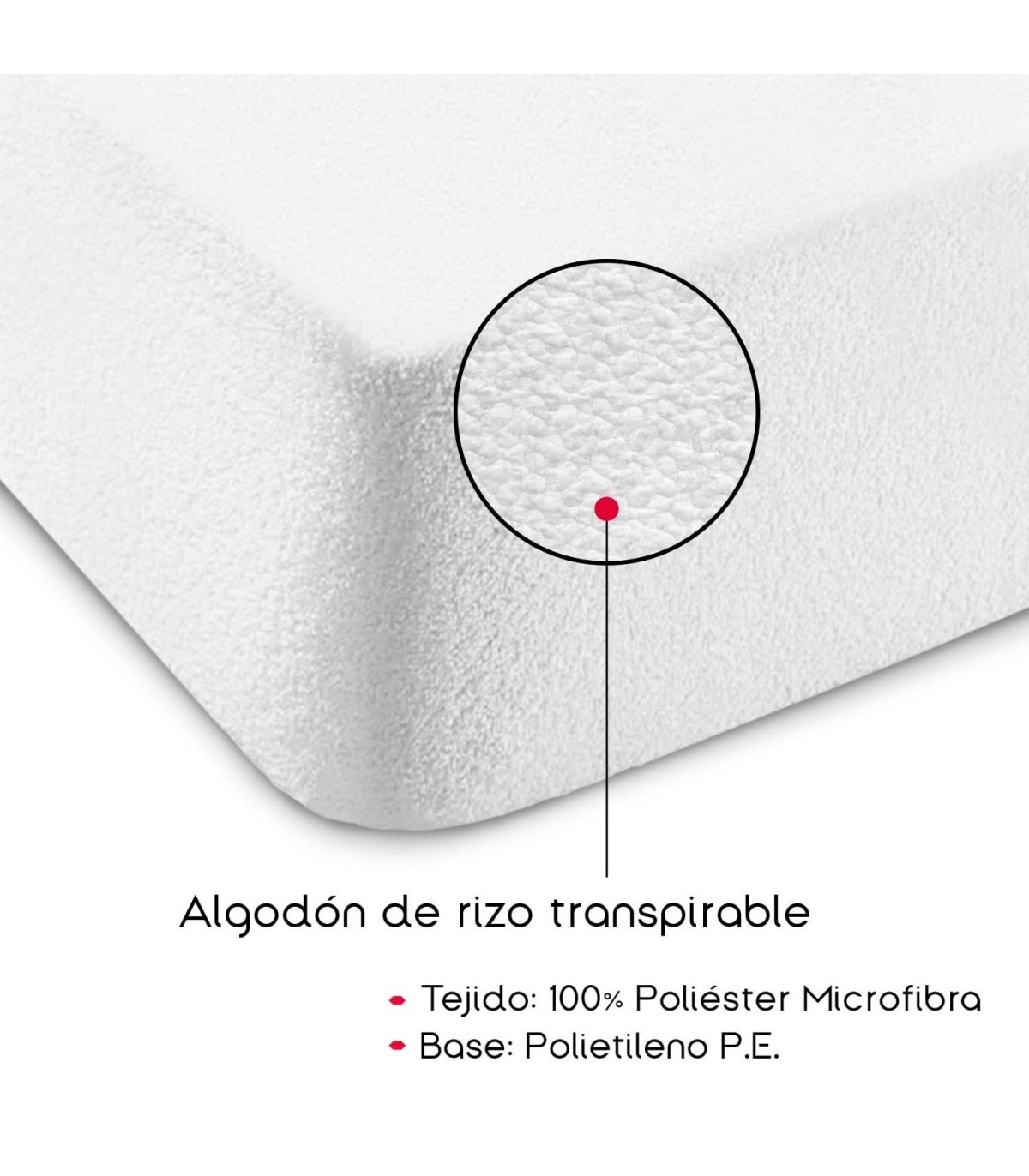 Este protector de colchón ha sido diseñado pensando en tu comodidad y en la vida útil de tu colchón. El material de algodón de rizo transpirable y su capa impermeable mantienen tu colchón fresco y libre de derrames, manchas y olores no deseados. Con su diseño elástico alrededor, este protector se ajusta como un guante a tu colchón, sin resbalar ni arrugarse durante la noche. No tendrás que preocuparte por ajustes incómodos.