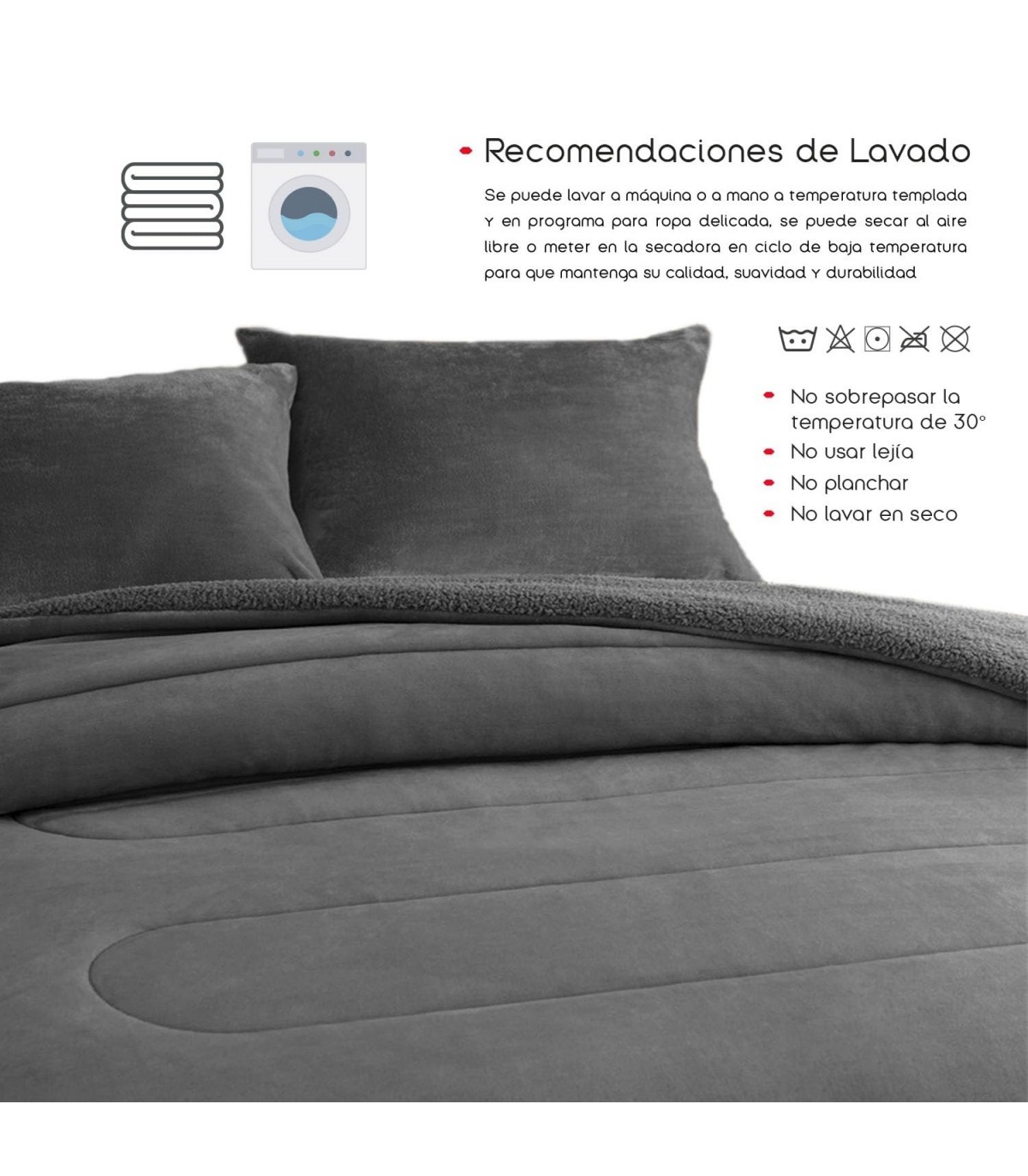 Disfruta de un descanso placentero y confortable con el Edredón Borrego Liso de TIENDA EURASIA, diseñado para ofrecerte la máxima suavidad y calidez en las noches de invierno. Con un acabado exterior 100% poliéster y un interior de Sherpa polar, este edredón 2 en 1 es el complemento perfecto para mantenerte abrigado y relajado. Disponible en varios colores elegantes y acompañado de una funda de almohada a juego, este edredón transformará tu dormitorio en un oasis de confort.