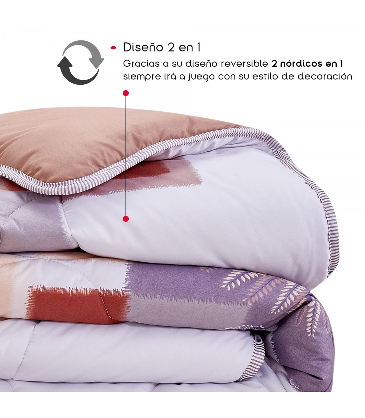 Edredón Nórdico Reversible | 100% Relleno de Fibra Siliconada | Estampado Bicolor | Tacto Suave y Confortable