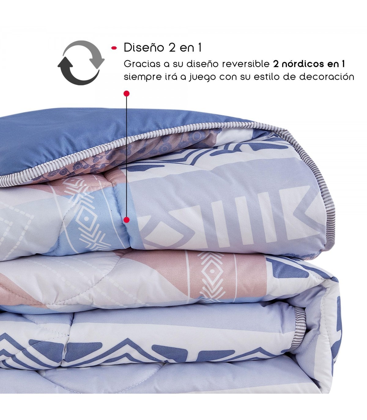 Edredón Nórdico Reversible | 100% Relleno de Fibra Siliconada | Estampado Bicolor | Tacto Suave y Confortable