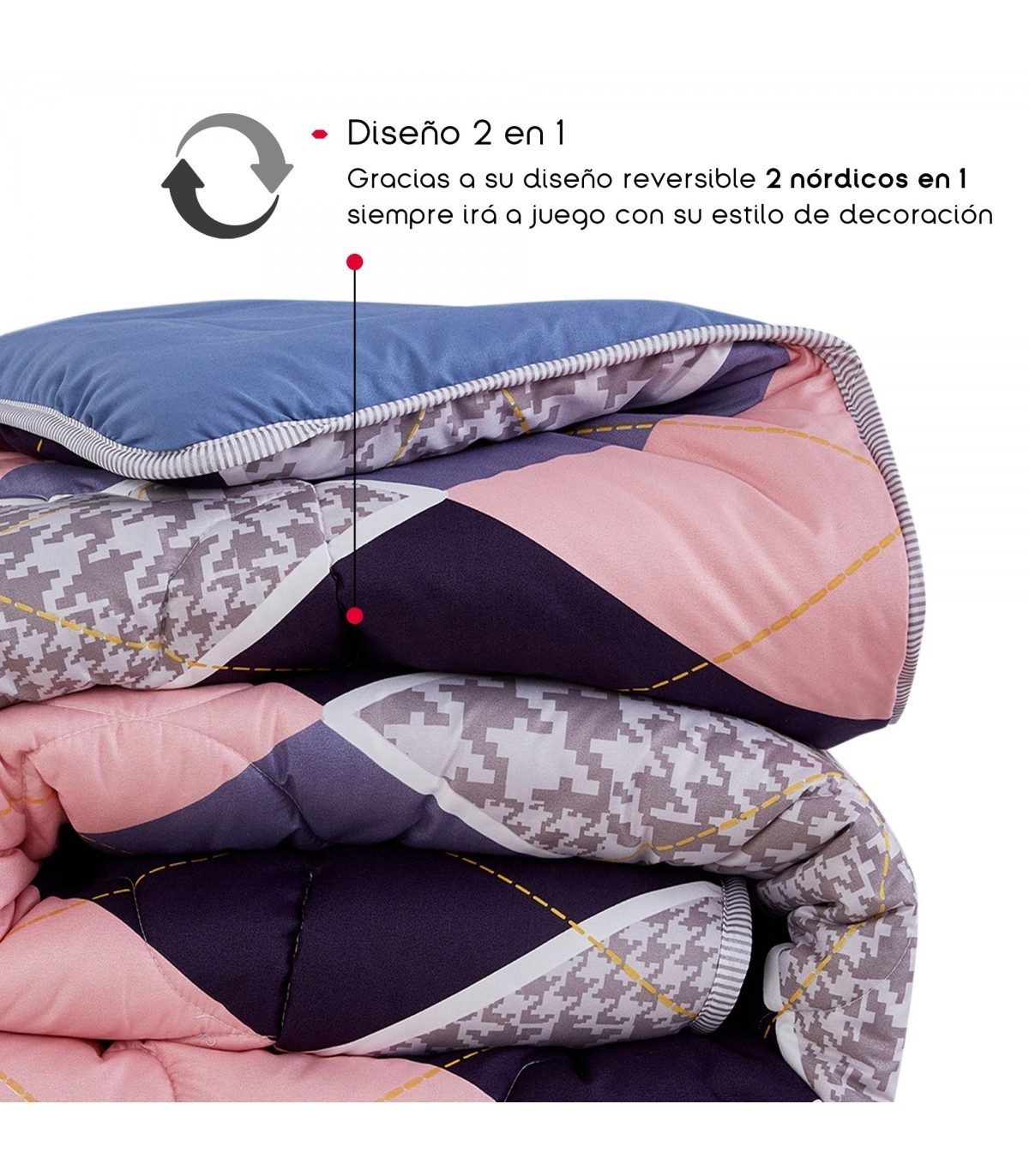 Edredón Nórdico Reversible | 100% Relleno de Fibra Siliconada | Estampado Bicolor | Tacto Suave y Confortable