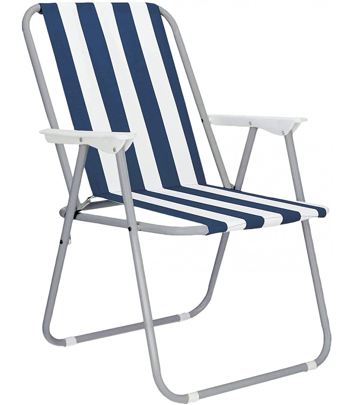 ✅ DISEÑO - Silla Plegable de Playa o Camping - Estampado de Loneta a Rayas en Verde o Azul