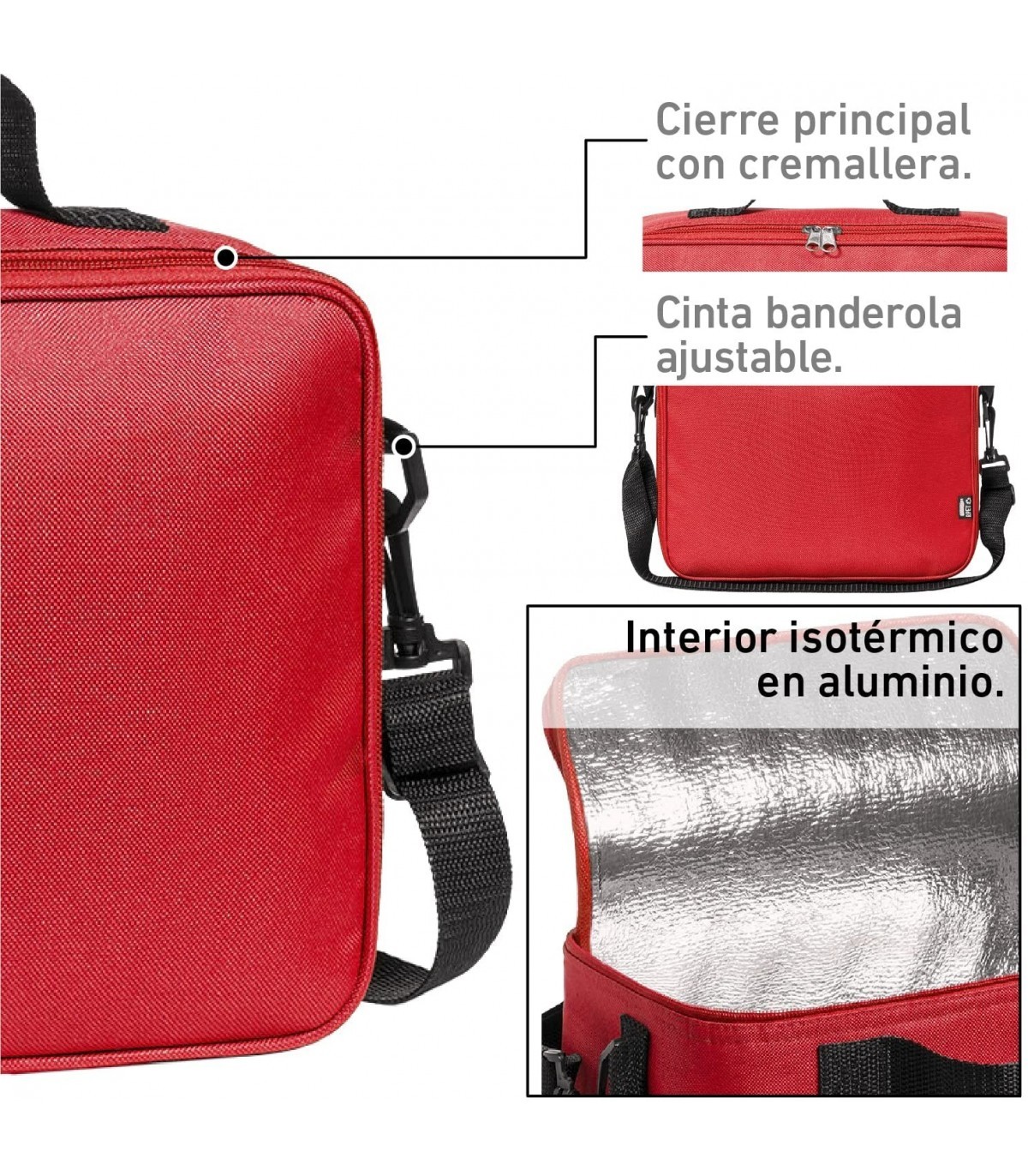 Nevera de Tela Base Reforzada, Isotermo con Asa y Bandolera Ajustable (Rojo)