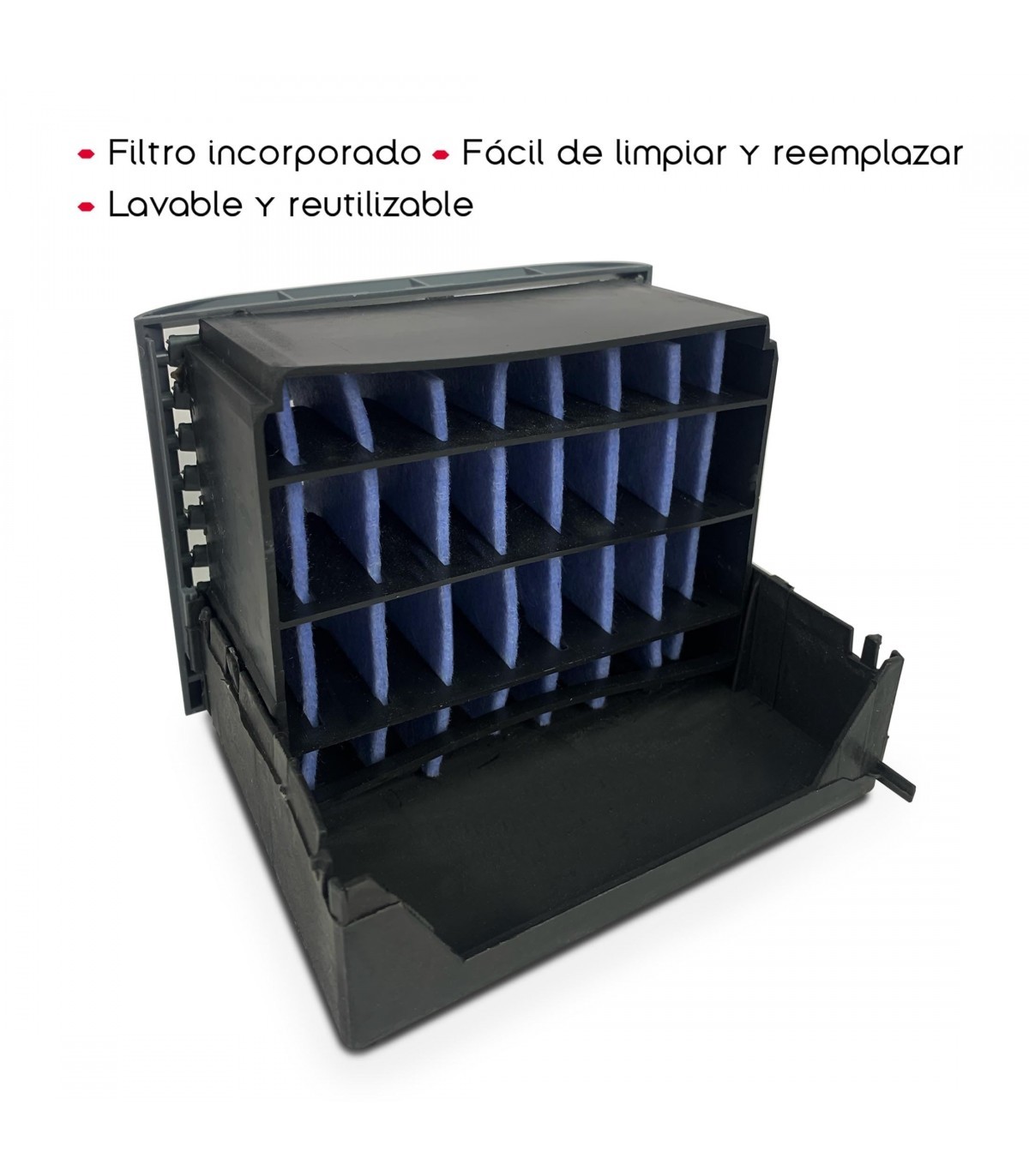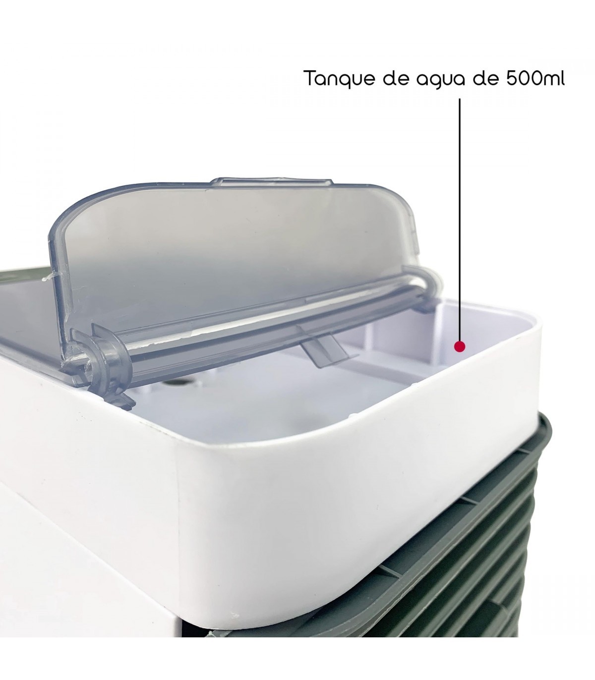 El mini aire acondicionado cuenta con un tanque de agua de 500 ml, lo que garantiza hasta 8 horas de uso continuo. Solo llena el tanque, enciéndelo y disfruta de horas de confort sin interrupciones.