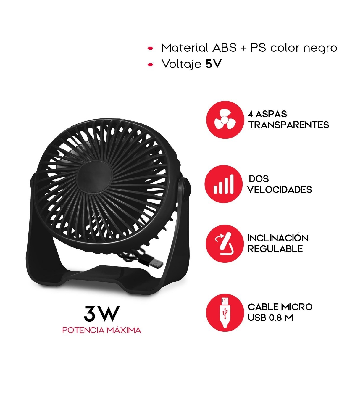 ? ALIMENTACIÓN POR USB: Gracias a su conexión USB, este ventilador es compatible con una amplia variedad de dispositivos, como computadoras portátiles, power banks o cargadores de pared. Simplemente conéctalo y disfruta de una brisa refrescante en cualquier lugar.